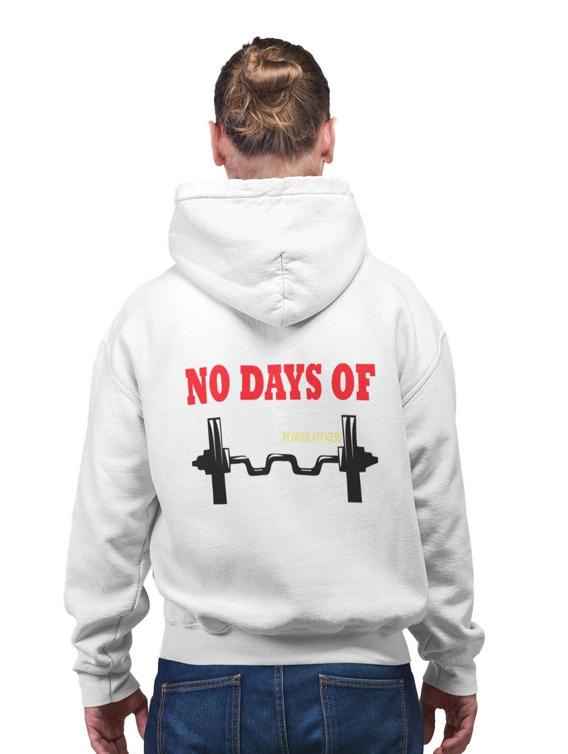 No Days Of Power Fitness printed artswear white hoodies for winter casual wear specially for Men