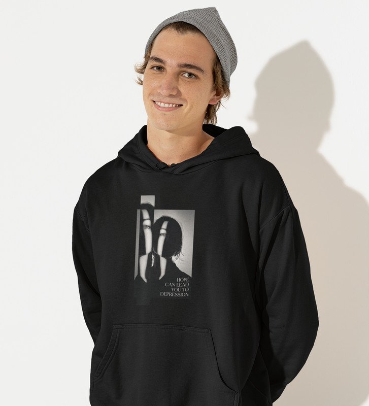 No Love No Hope, Statement Piece:Black Stylish Front Graphic Hoodies for Men