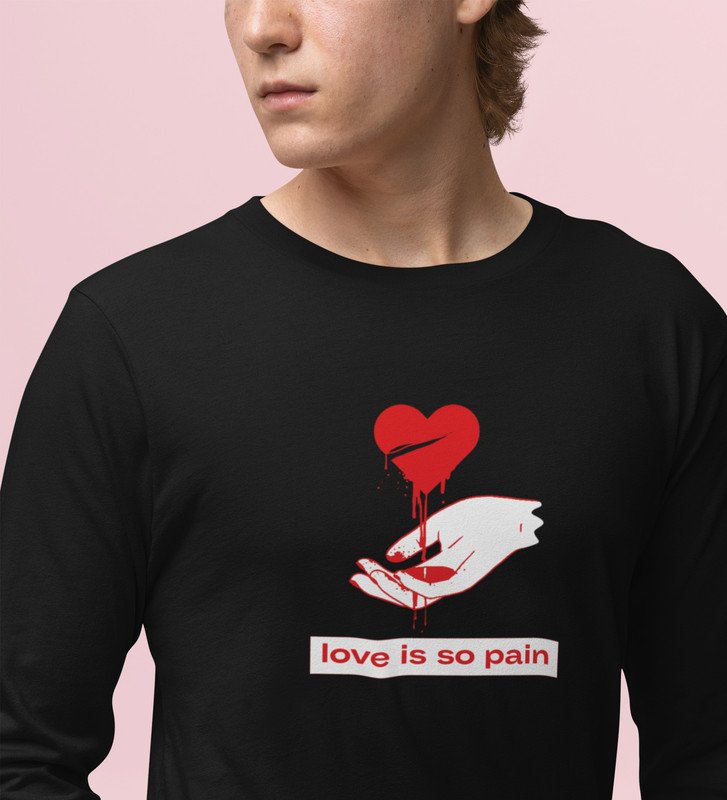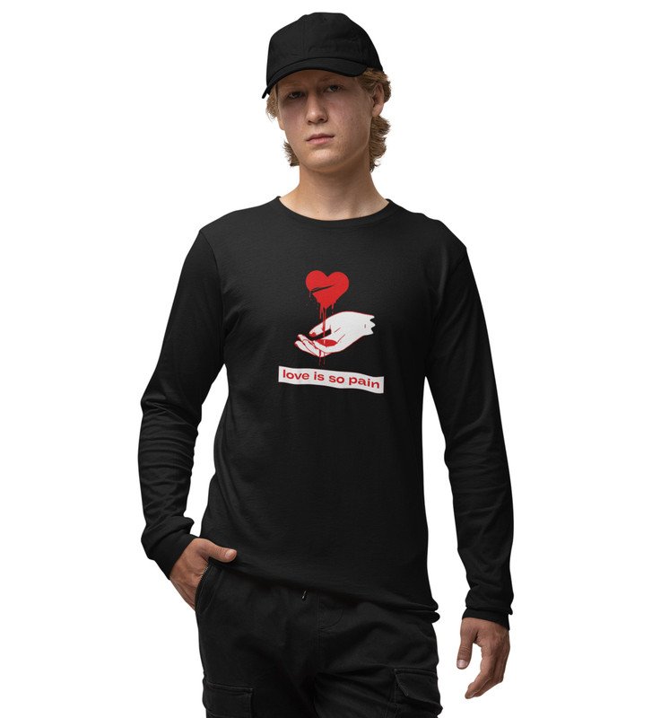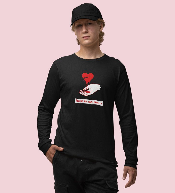 No Love No Pain: Sublimation Printed (black) Full Sleeve T-Shirt For Singles