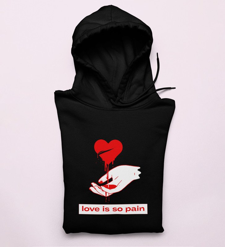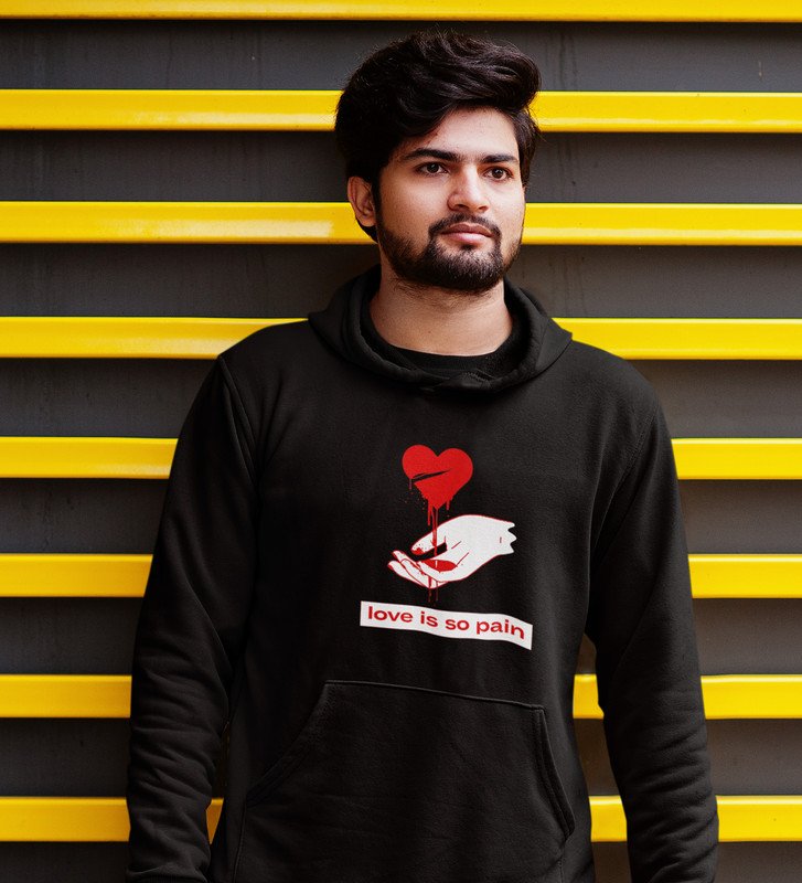 No Love No Pain: Sublimation Printed (black) Hoodies For Singles