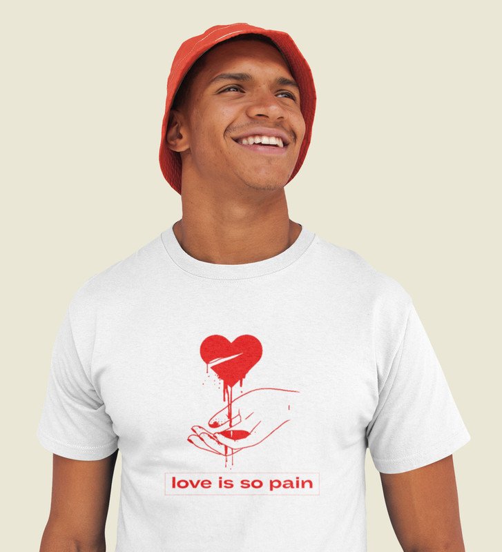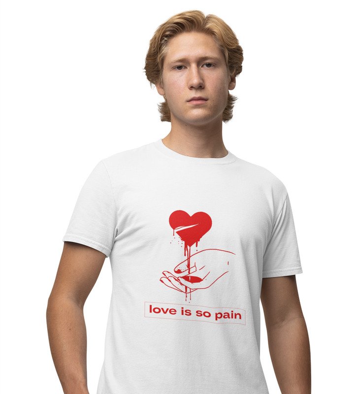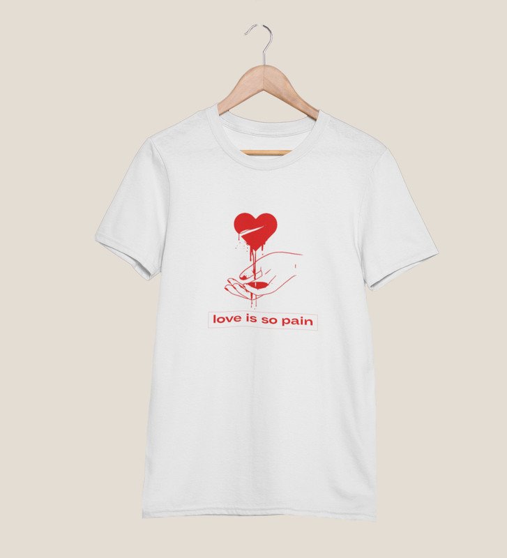 No Love No Pain: Sublimation Printed (white) T-Shirt For Singles