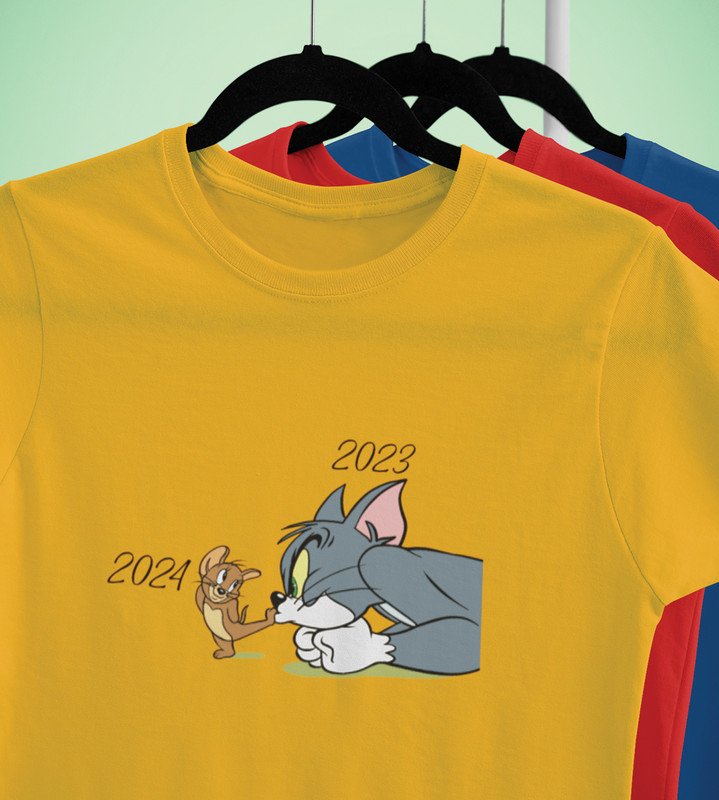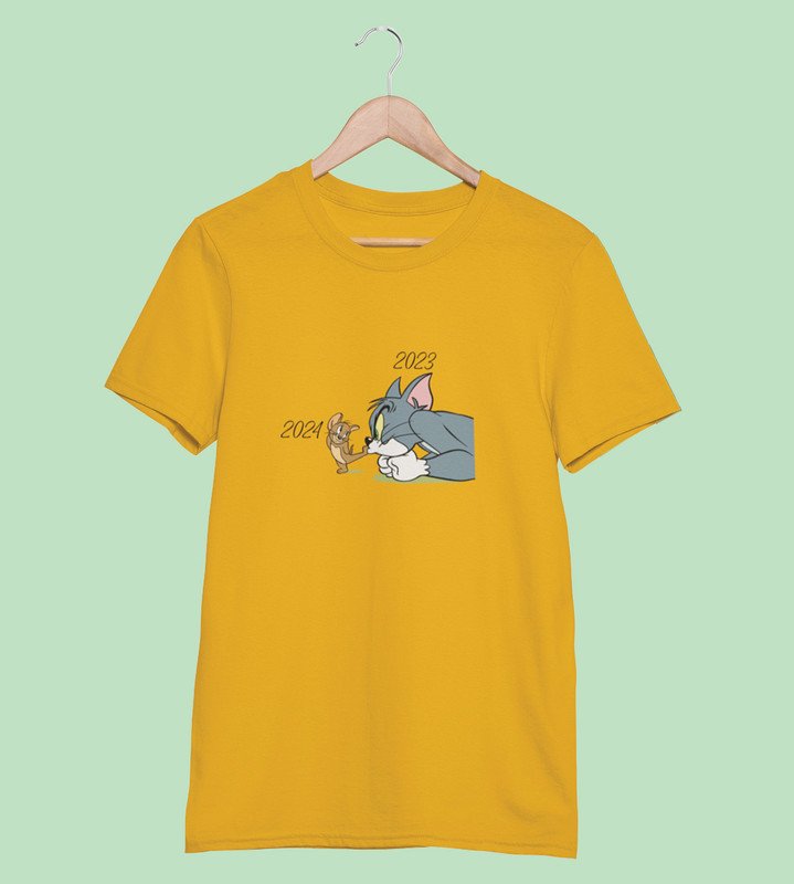 No More 2023 Yellow New Year Printed T-shirt For Mens