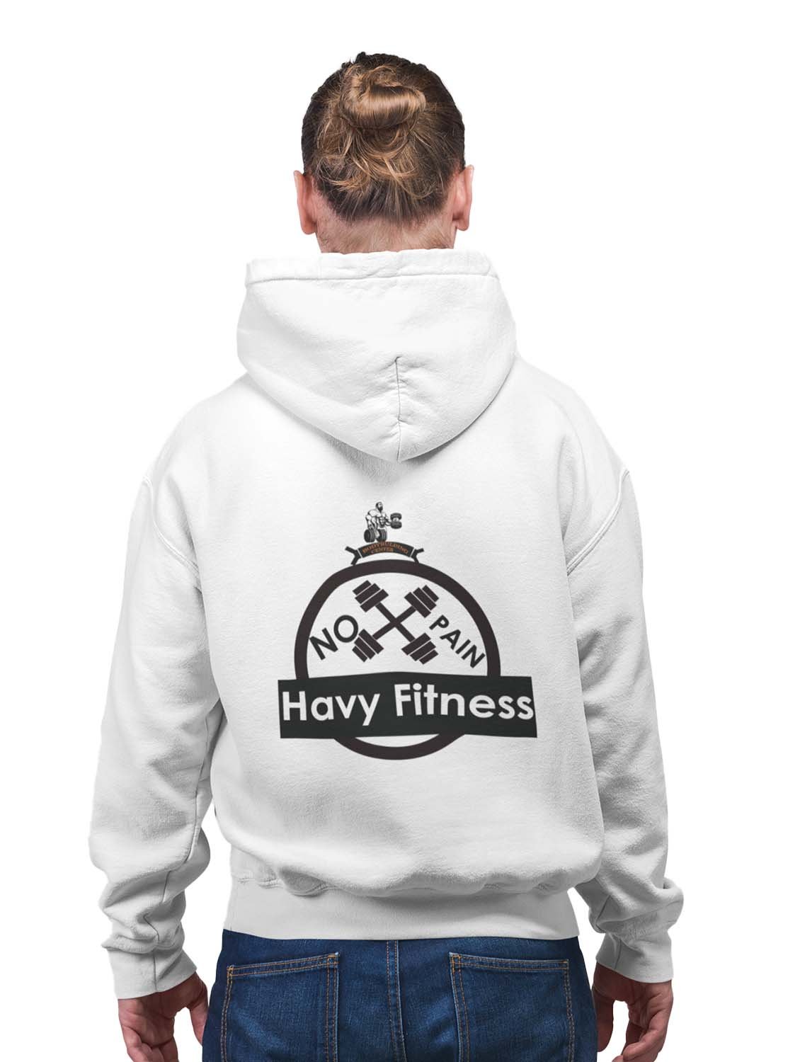 No Pain, Heavy Fitness printed artswear white hoodies for winter casual wear specially for Men