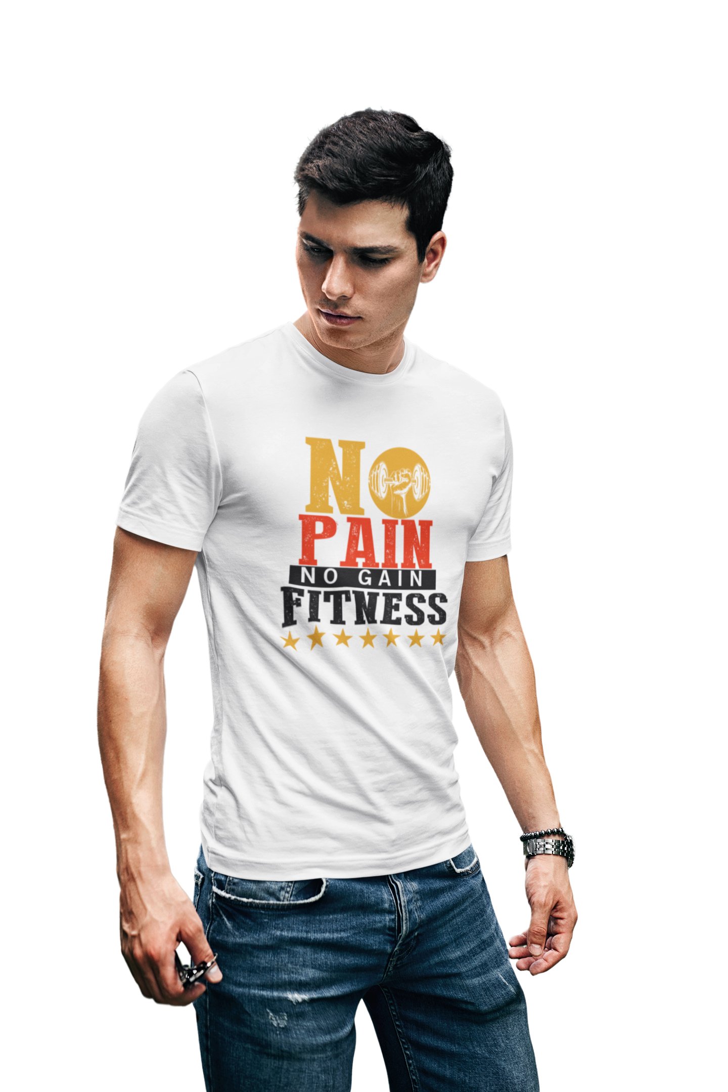 No Pain, No Gain, Fitness, Round Neck Gym Tshirt (White Tshirt) - Clothes for Gym Lovers - Foremost Gifting Material for Your Friends and Close Ones