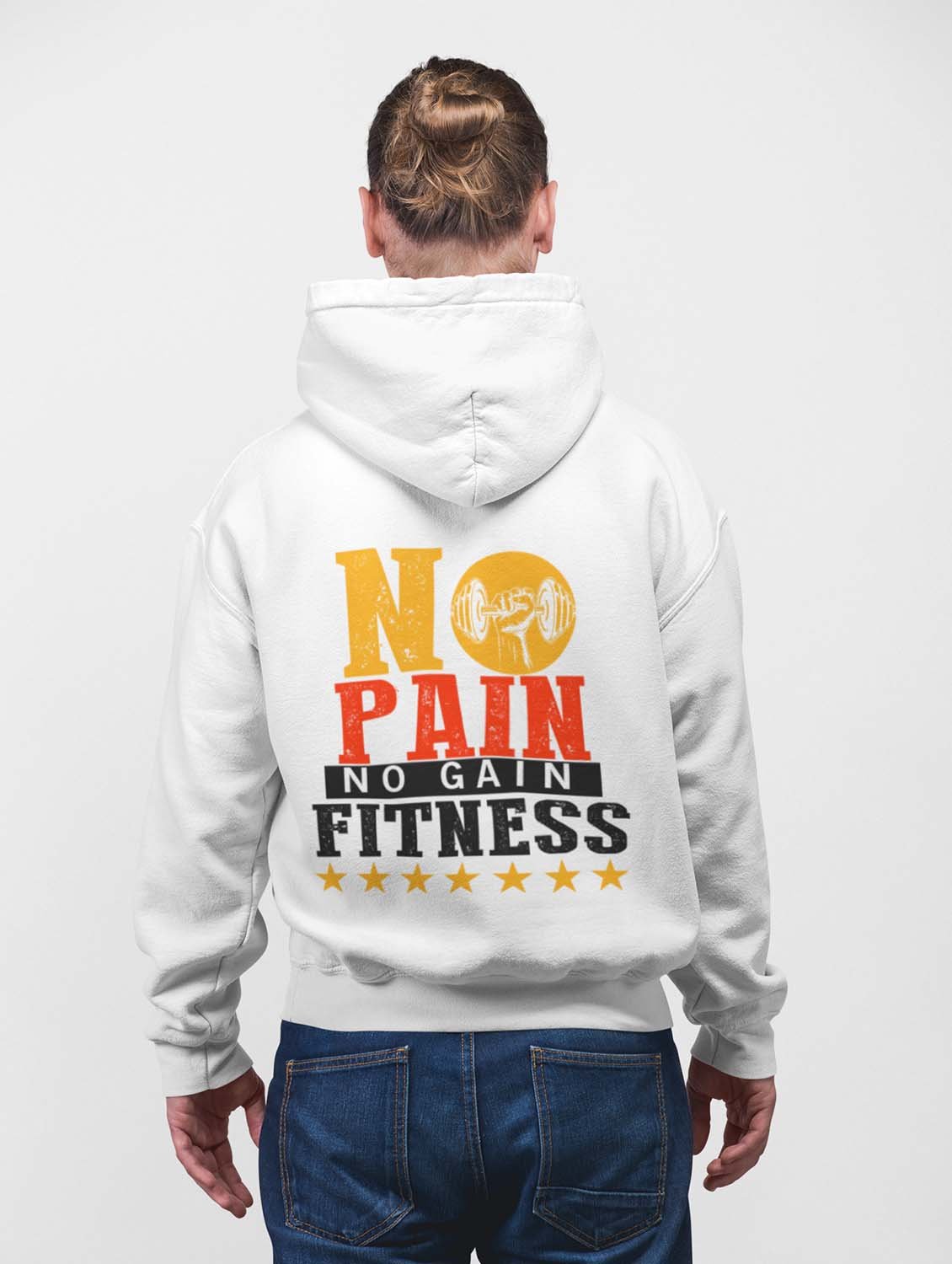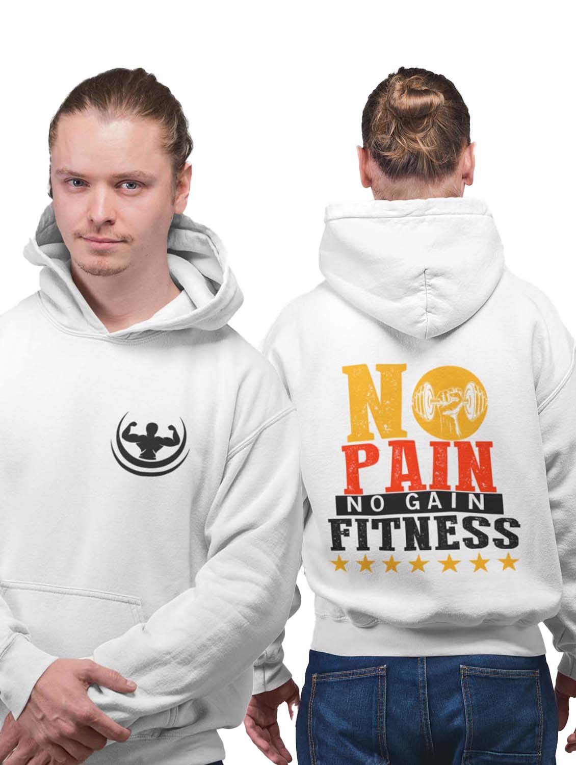 No Pain, No Gain, Fitness Text printed artswear white hoodies for winter casual wear specially for Men