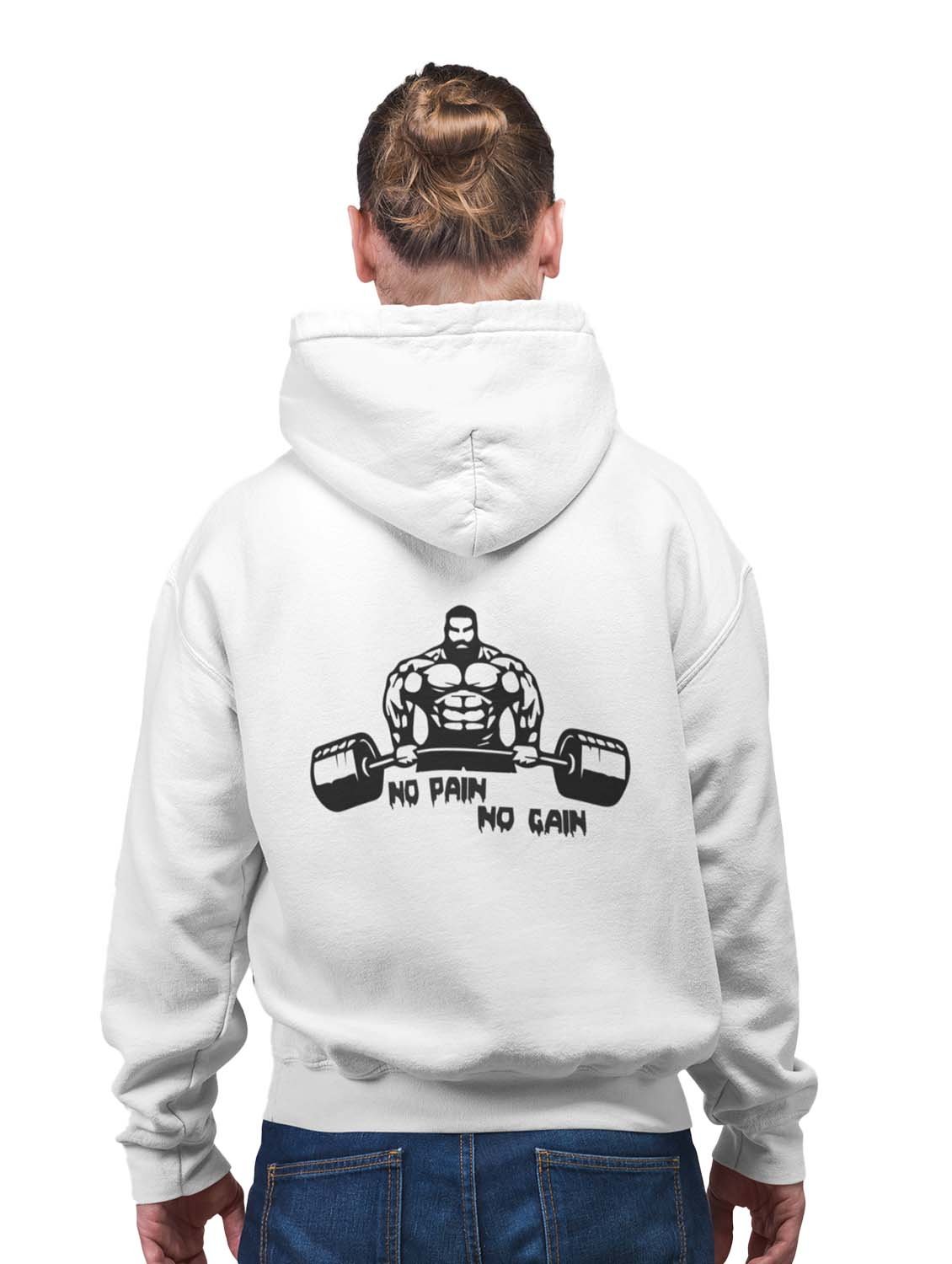 No Pain No Gain printed artswear white hoodies for winter casual wear specially for Men