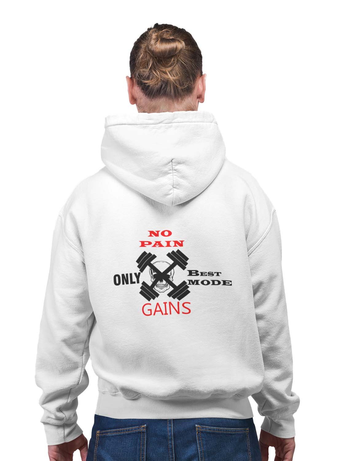No Pain, Only Beat Mode Gains, (Red and Black Text) printed artswear white hoodies for winter casual wear specially for Men
