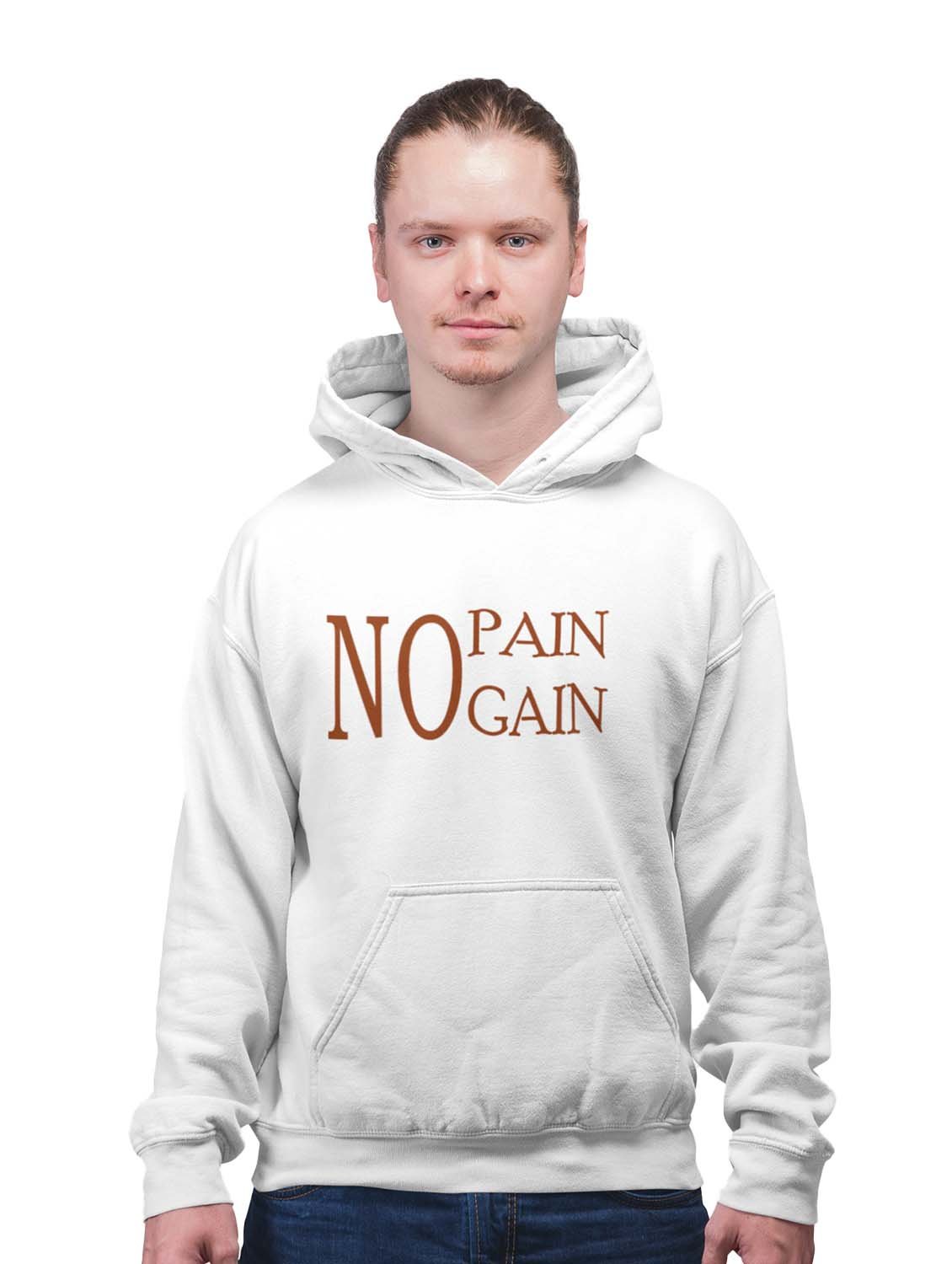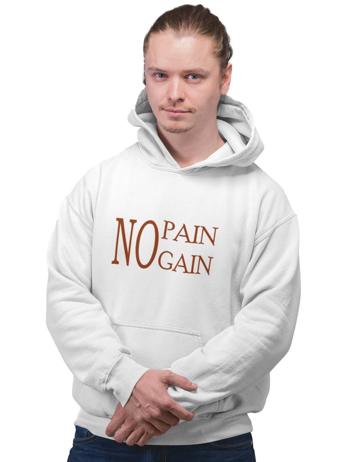NO Pain,NO Gain Brown Text printed artswear white hoodies for winter casual wear specially for Men