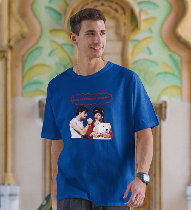 No Sorry, No Thankyou Blue Round Neck Cotton Half Sleeved Men T Shirt with Printed Graphics