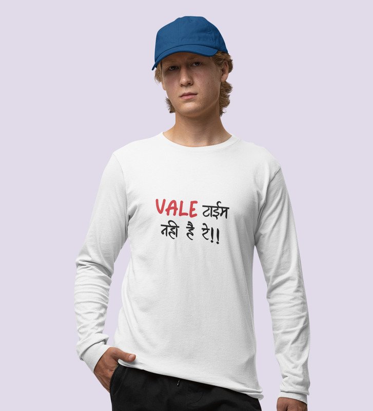 No Time For Valentine: (white) Full Sleeve T-Shirt For Singles.