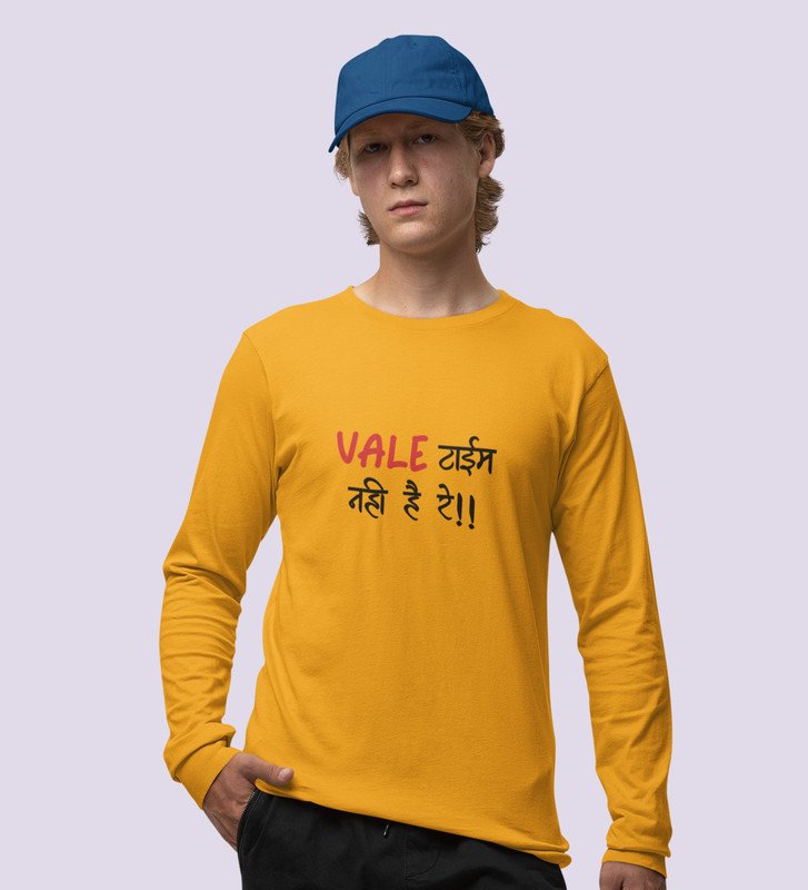 No Time For Valentine: (yellow) Full Sleeve T-Shirt For Singles.