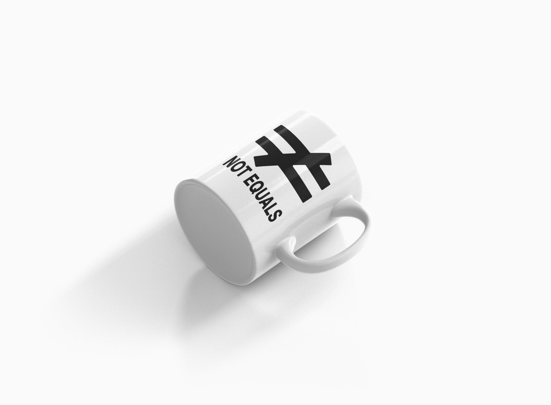 Not Equals- formula themed printed ceramic white coffee and tea mugs/ cups for maths lovers