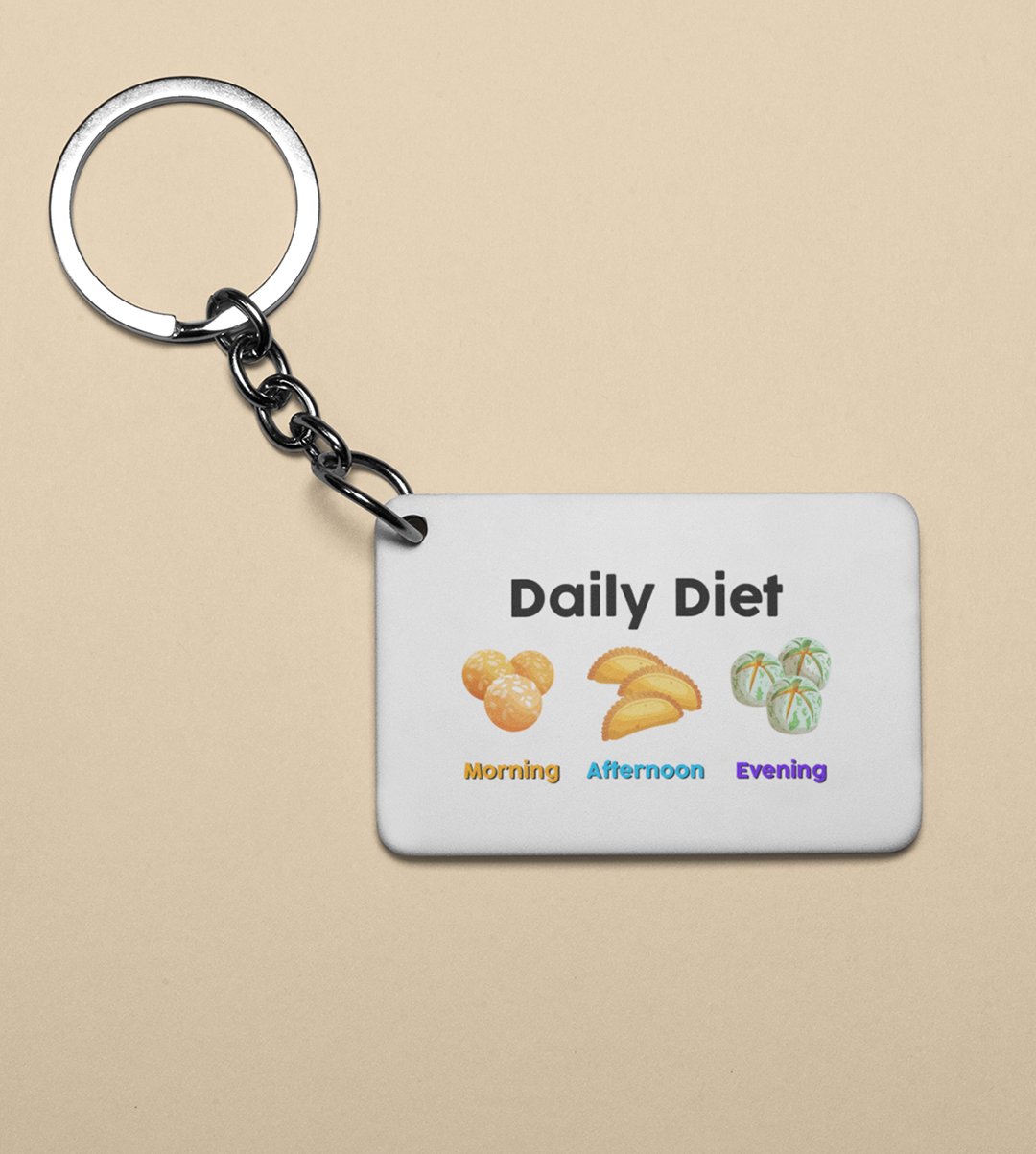 Let the world know about your love for sweets with this keychain showcasing the daily diet of a sweet lover during Diwali.