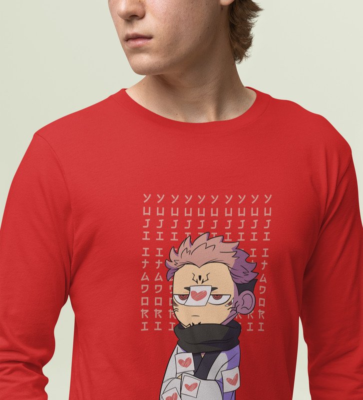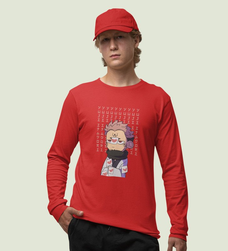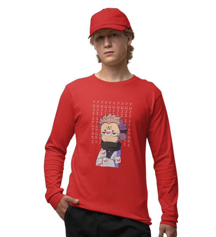 Notorious Itadori Cotton Red Full Sleeves Tshirt For Mens and Boys