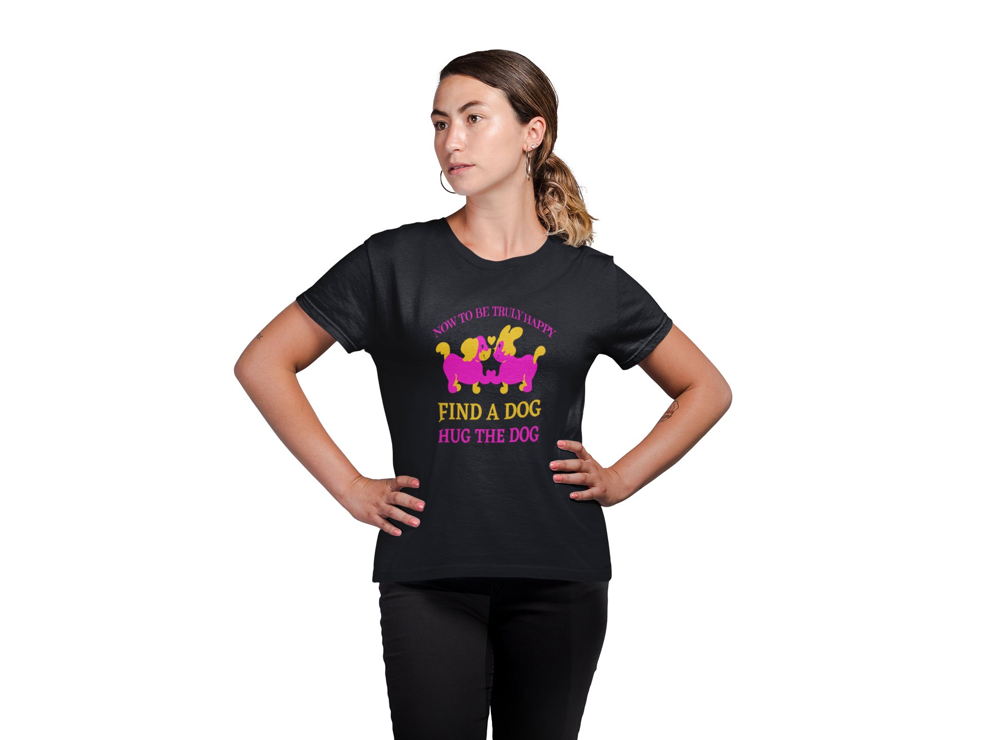 Now to be truly happy find a dog hug the dog-Black-printed cotton t-shirt - comfortable, stylish