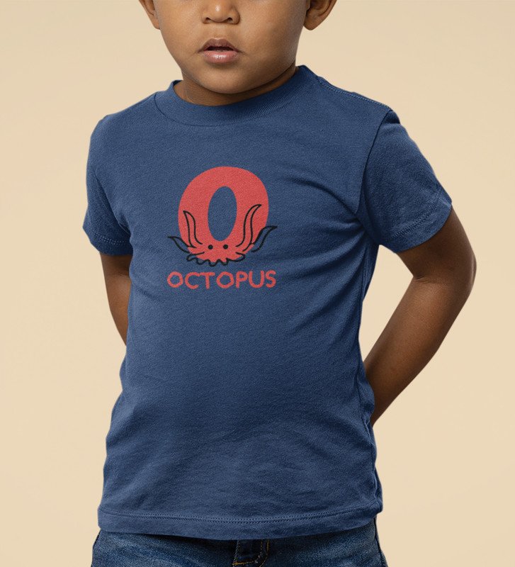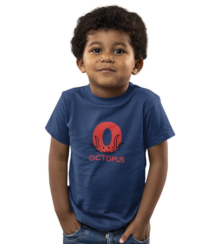 Ocean Octopus, Boys Printed Crew Neck Tshirt (Navy blue)