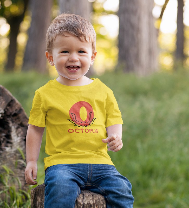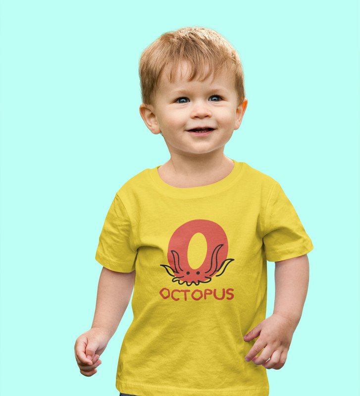 Ocean Octopus, Boys Printed Crew Neck tshirt (yellow)
