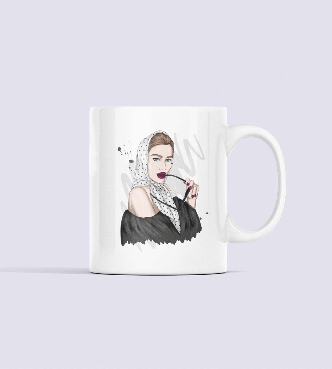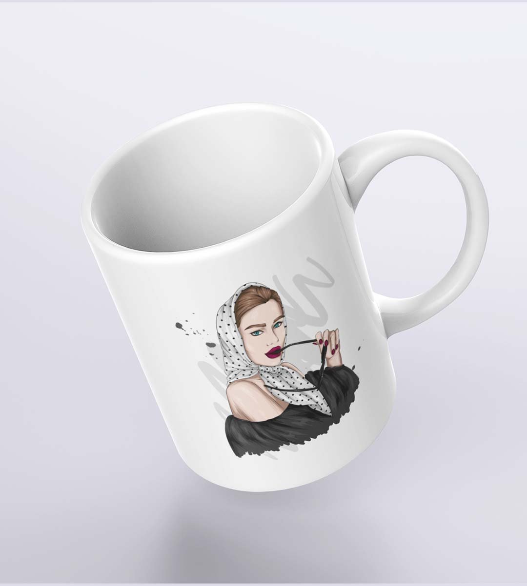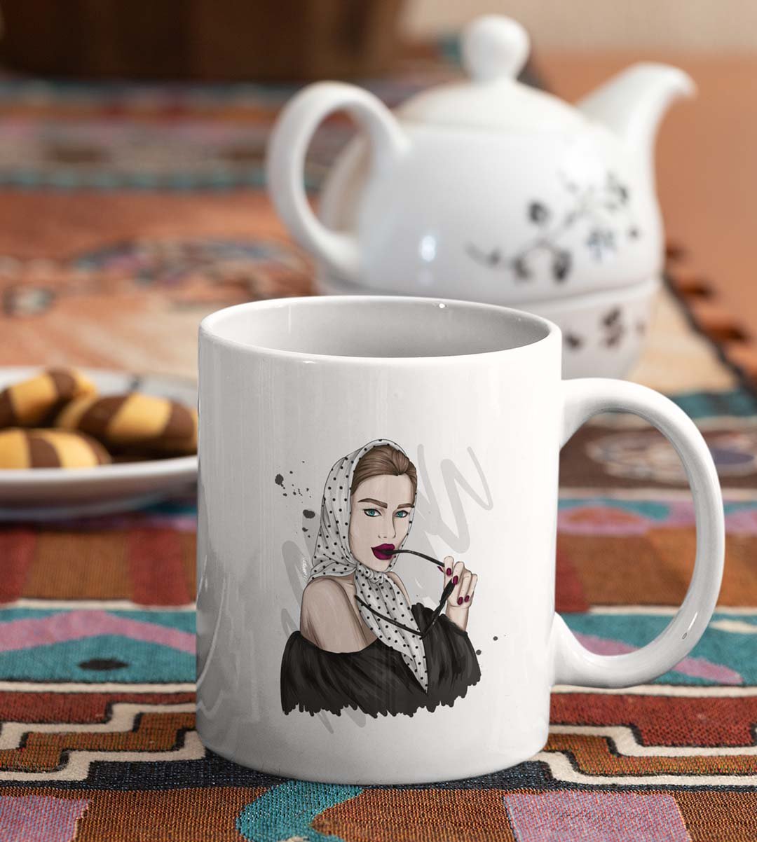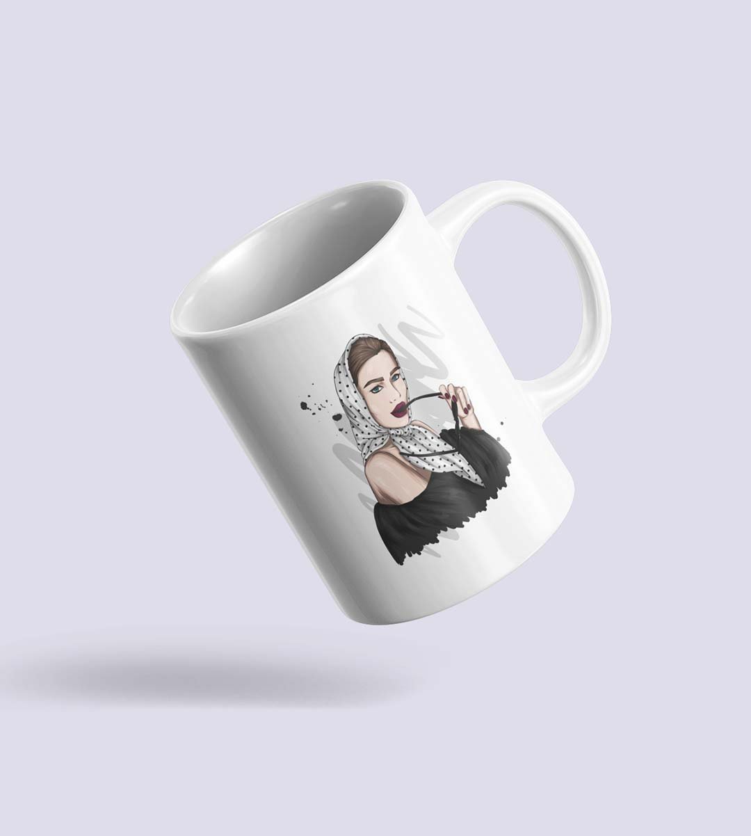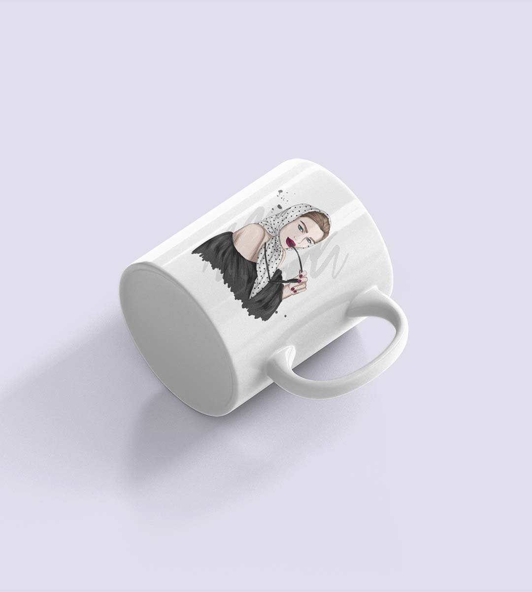 Off-shoulder black dress - animation themed printed ceramic white coffee and tea mugs/ cups for animation lovers