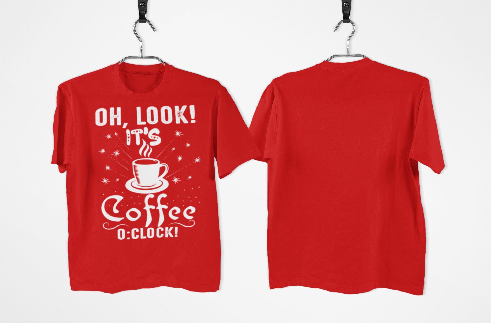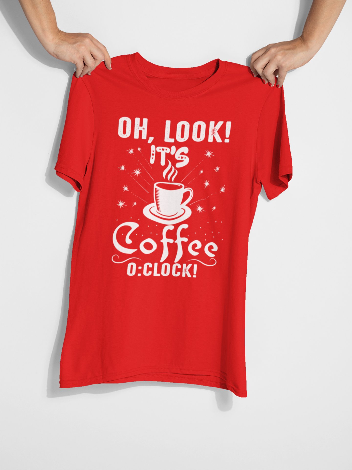 Oh look! it's Coffee 0:clock! - Red - printed t shirt - comfortable round neck cotton.