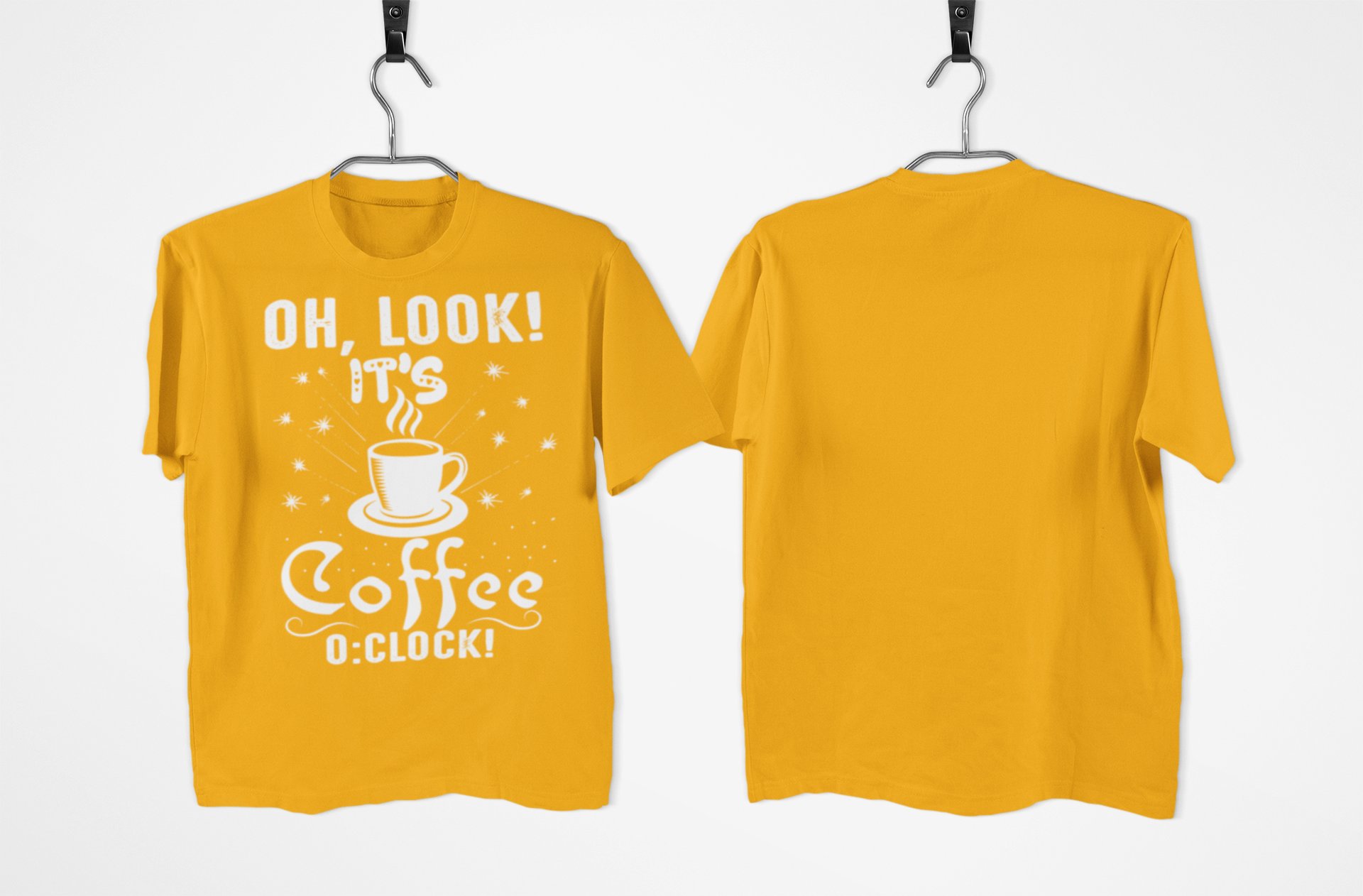 Oh look! it's Coffee 0:clock! - Yellow - printed t shirt - comfortable round neck cotton.