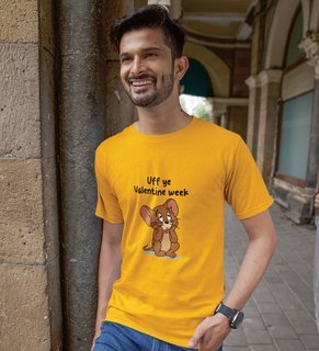 Oh No Valentine: Amazingly Printed (yellow) T-Shirt For Singles