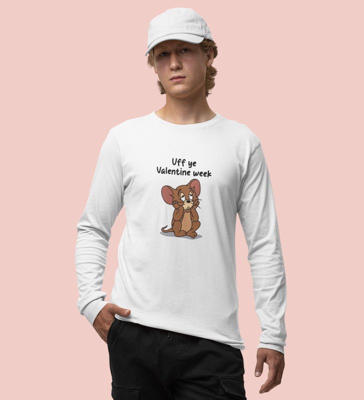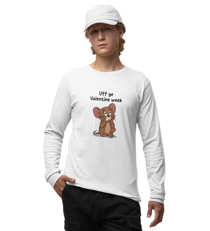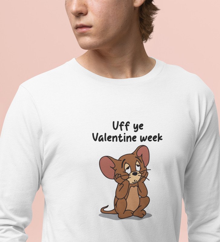 Oh No Valentine: Attractive Printed (white) Full Sleeve T-Shirt For Singles