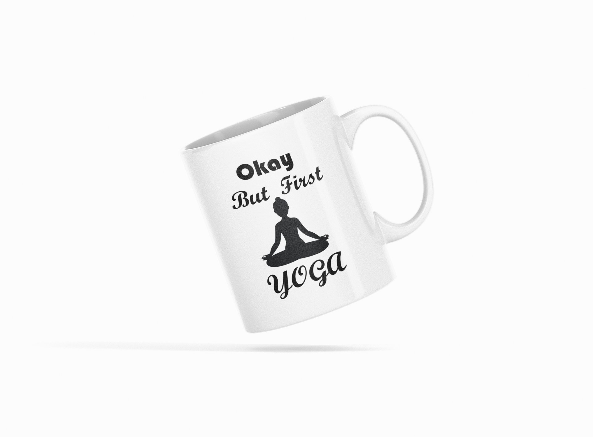 Okay But First Yoga Text - Printed Coffee Mugs For Yoga Lovers