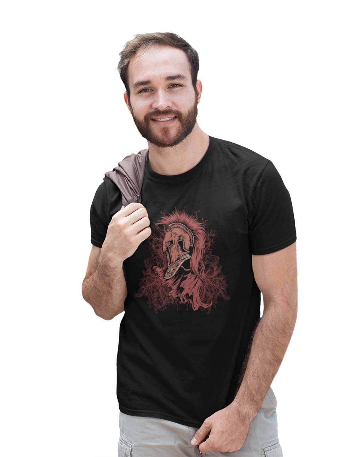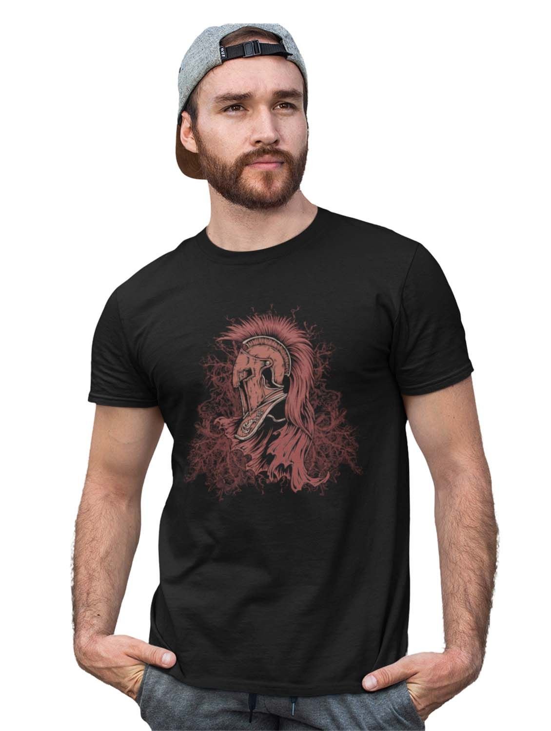 The Knight Black Round Neck Cotton Half Sleeved T-Shirt with Printed Graphics
