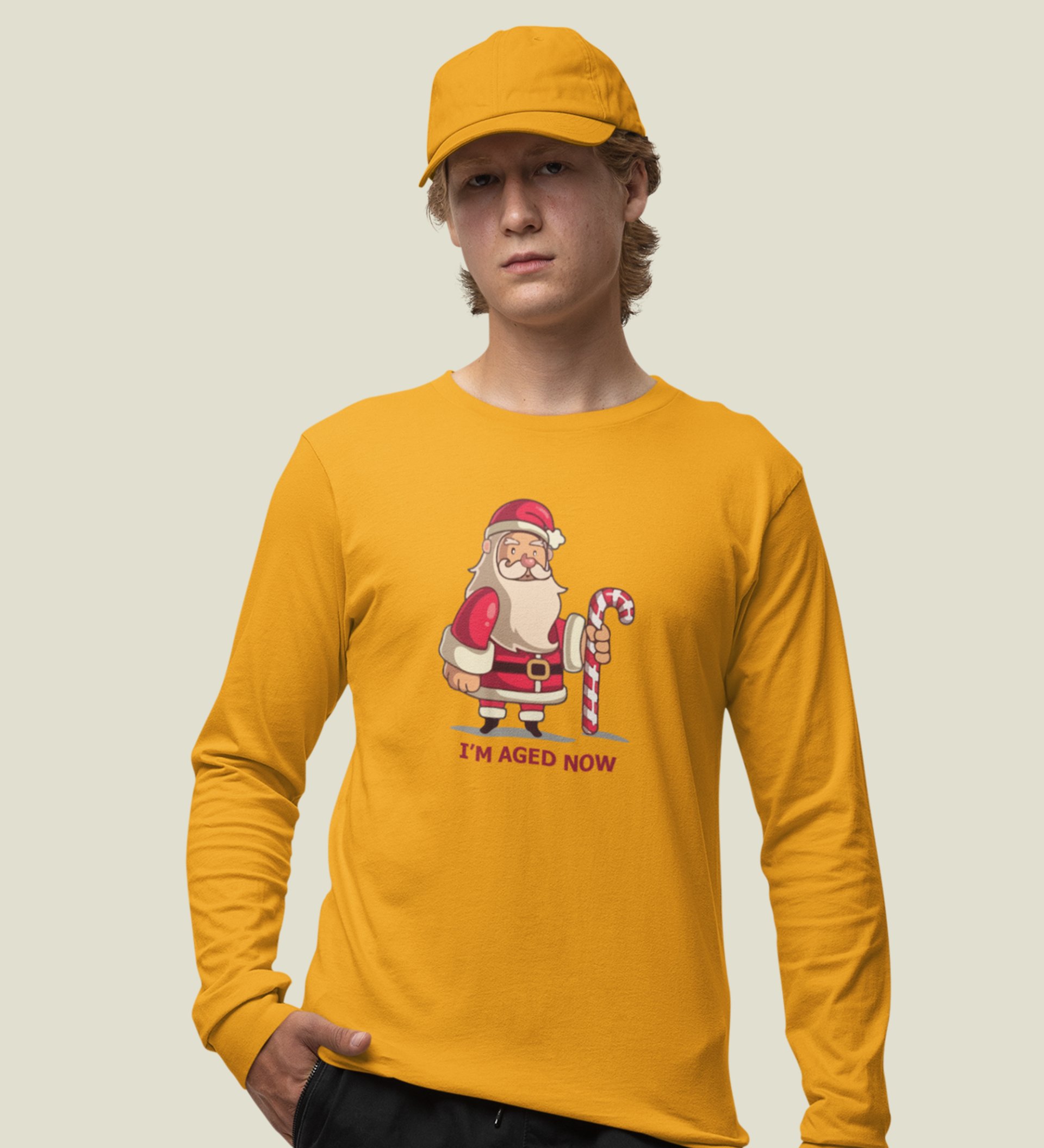 Old Grumpy Santa: Cute DesignedFull Sleeve T-shirt Yellow Perfect Gift For Boys Girls