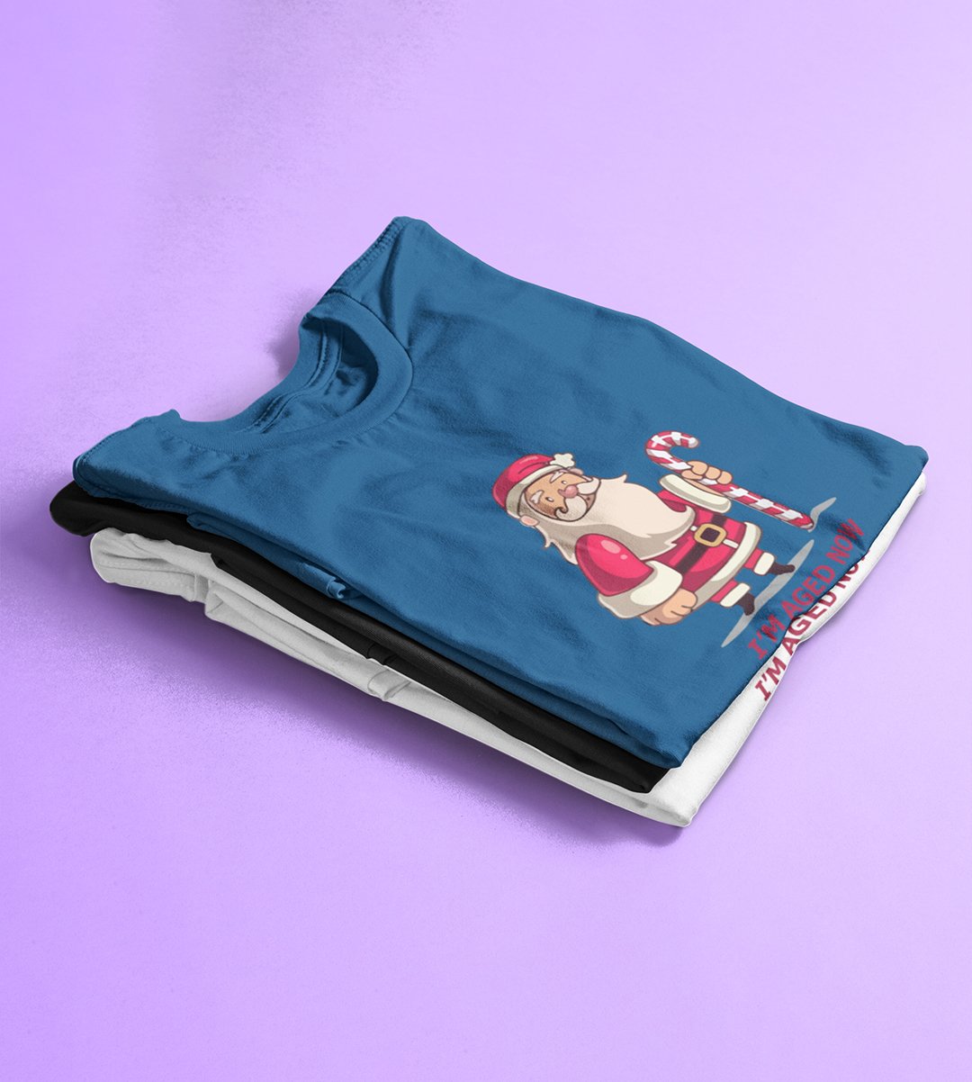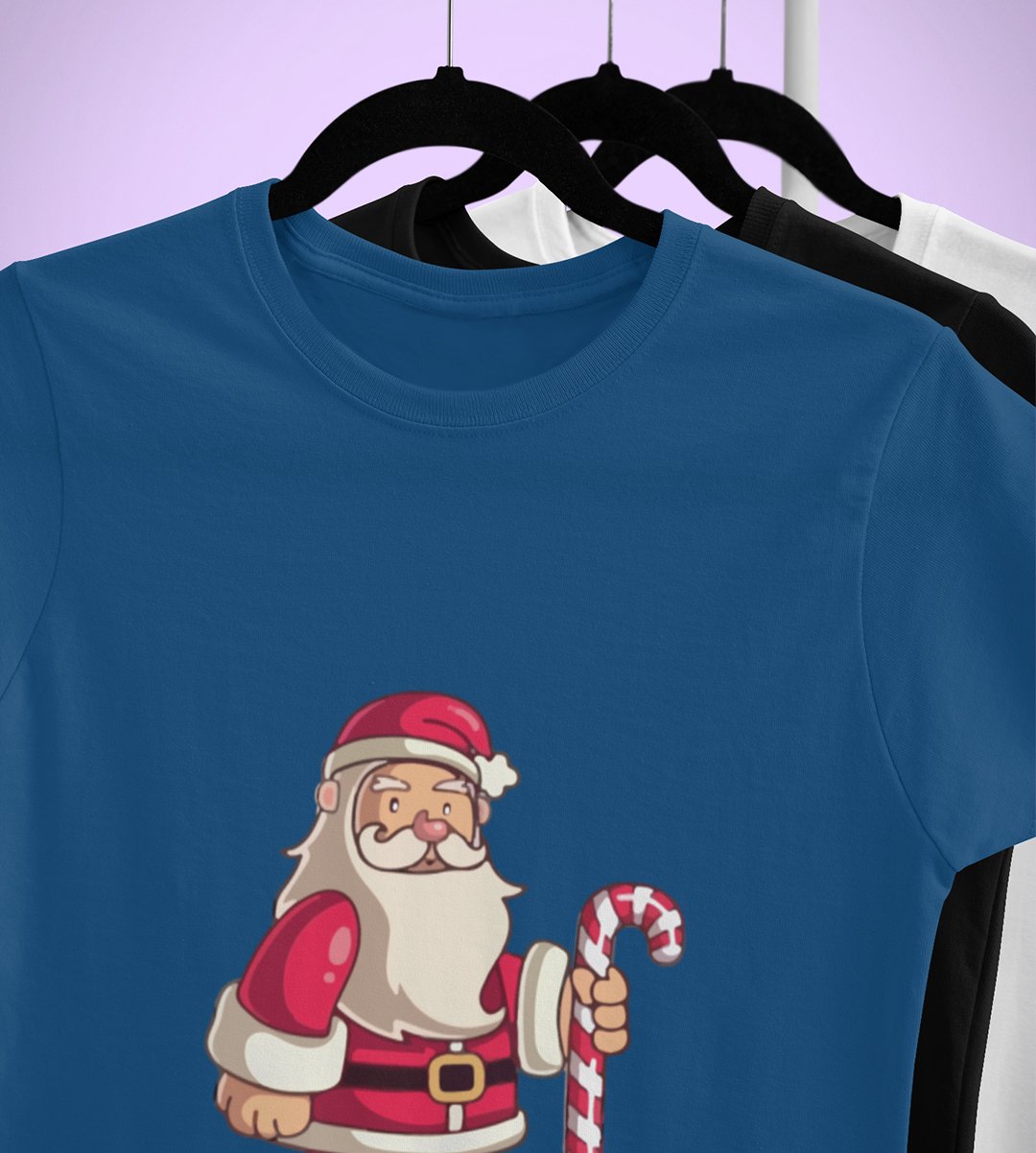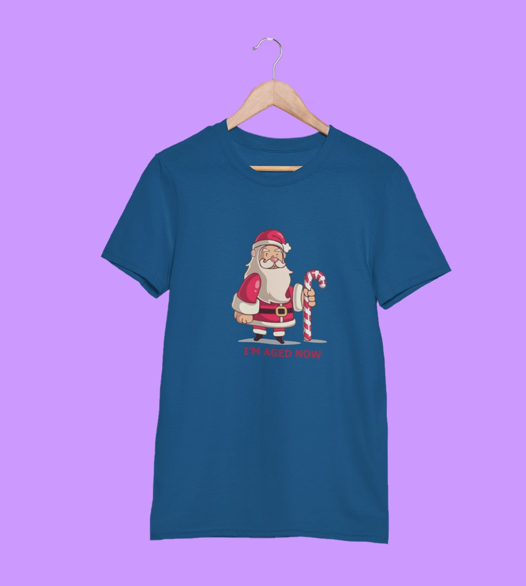 Old Grumpy Santa : Funny Printed T-shirt (Blue) Best Gift For Secret Santa