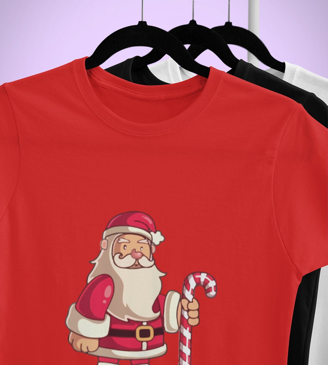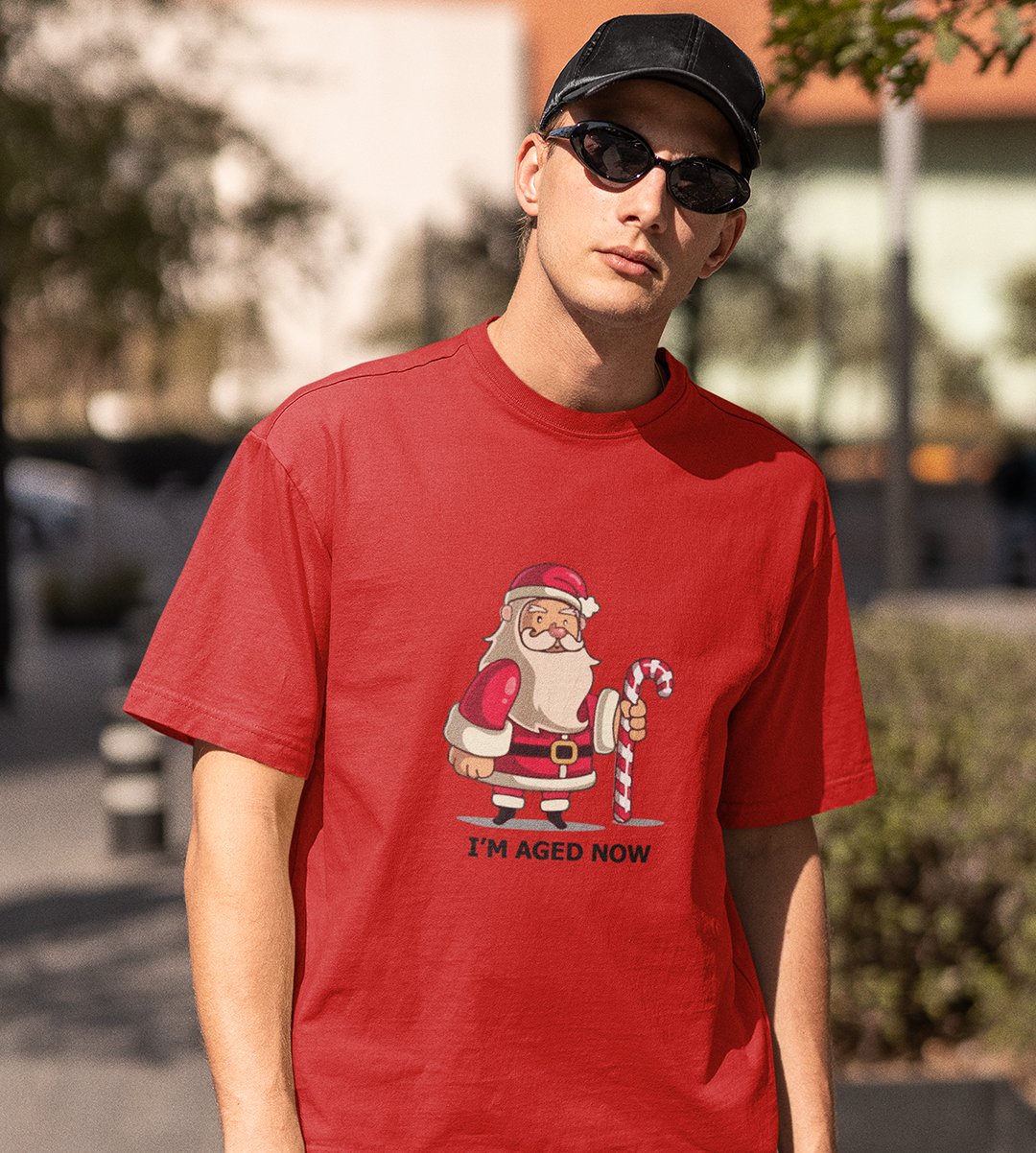 Old Grumpy Santa : Funny Printed T-shirt (Red) Best Gift For Secret Santa