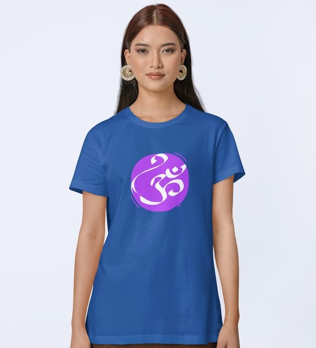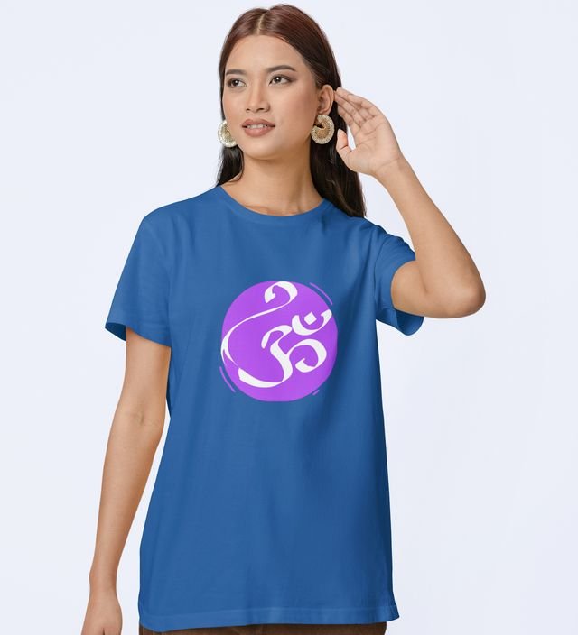 Om! Blue Round Neck Cotton Half Sleeved Women T-Shirt with Printed Graphics