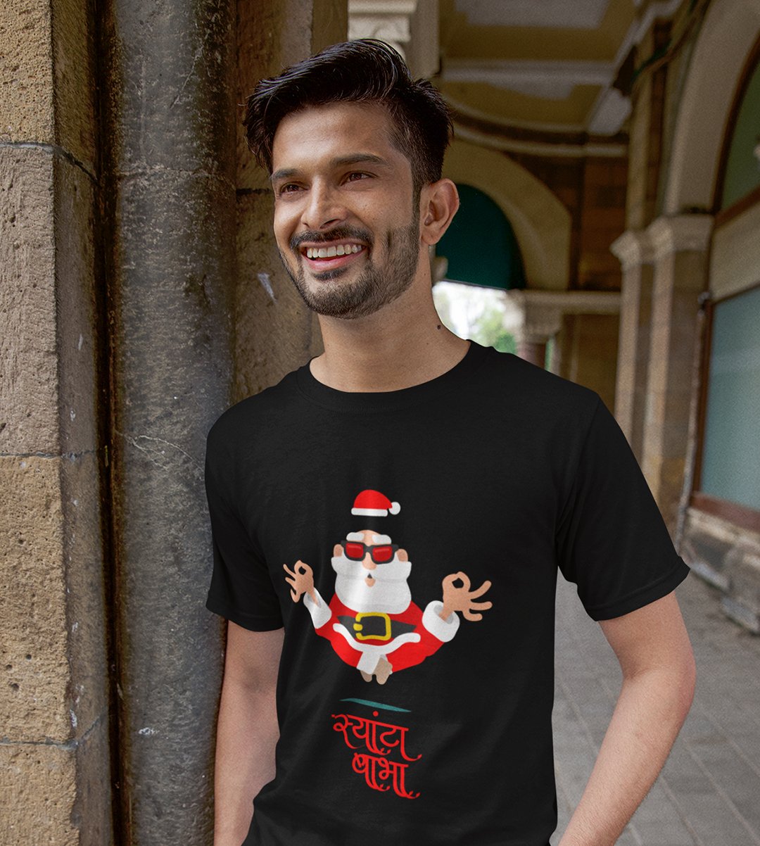 Om Santa Baba: Beautifully Printed T-shirt (Black) Best Fift For Secret Santa