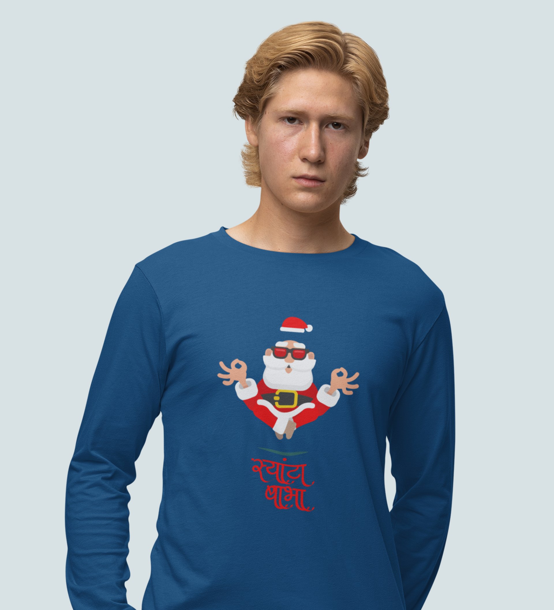 Om Santa Baba: Cute DesignerFull Sleeve T-shirt Blue Perfect Gifts For Boys girls