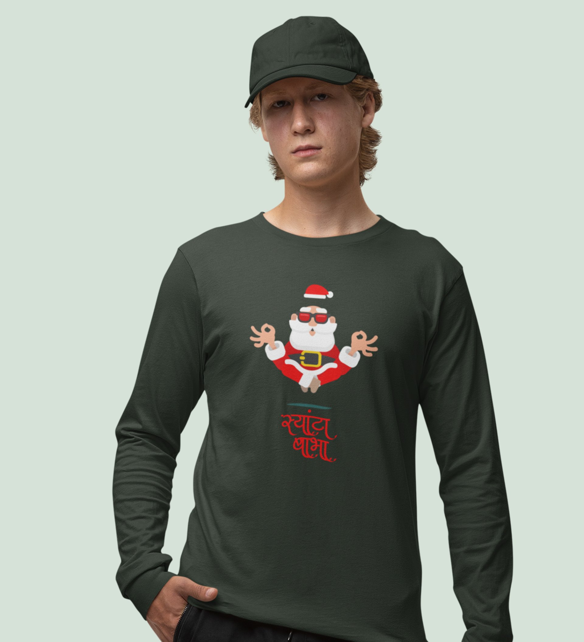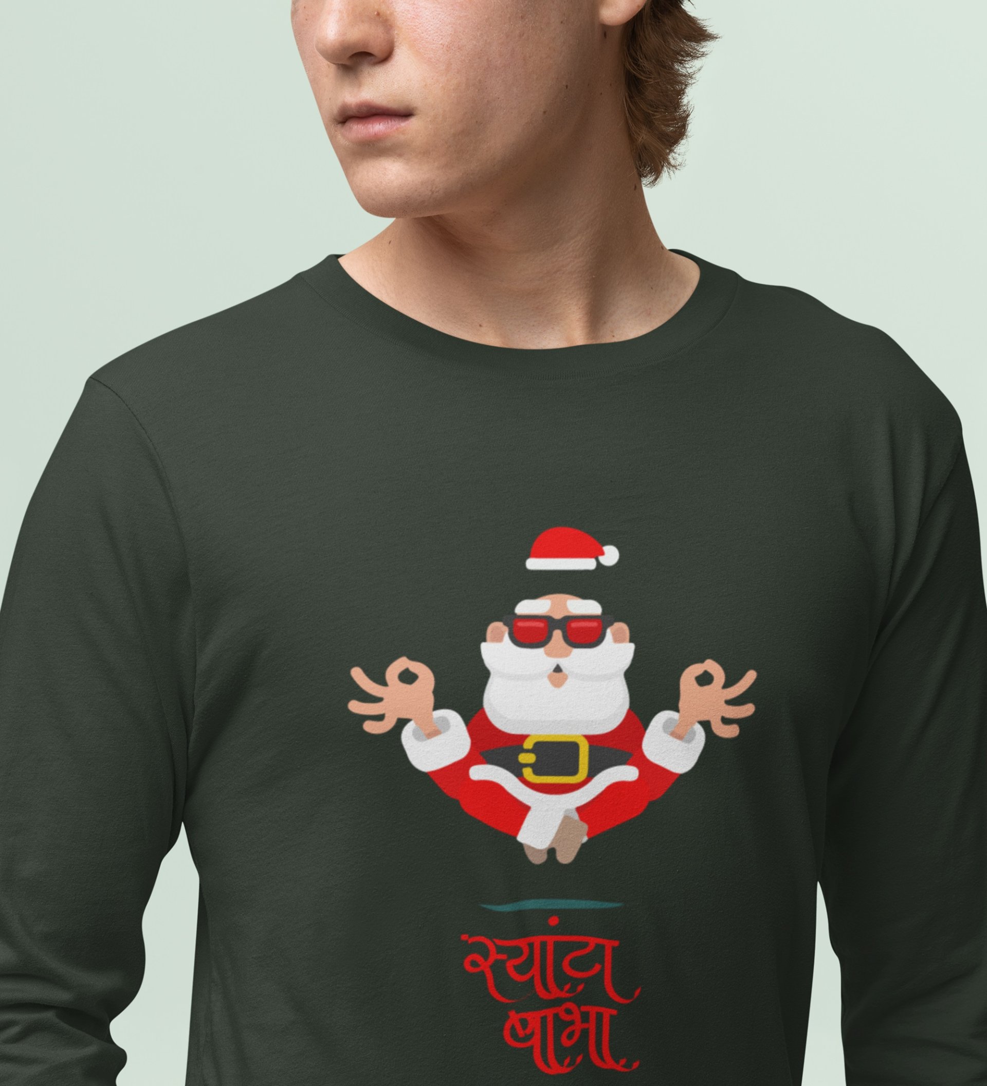 Om Santa Baba: Cute DesignerFull Sleeve T-shirt Green Perfect Gifts For Boys girls