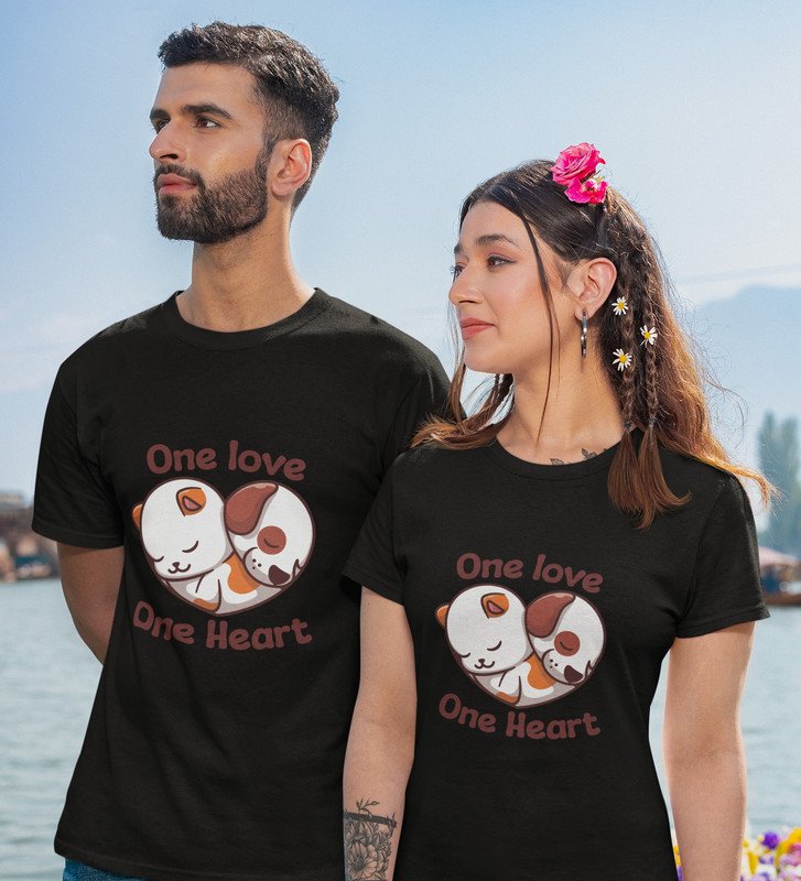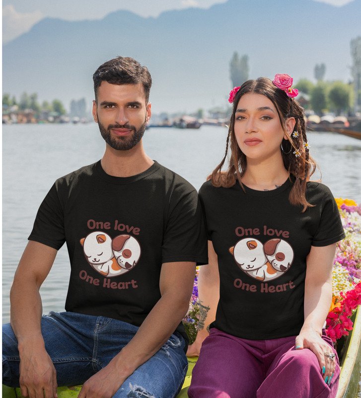 One Love One Heart Printed Couple (Black) T-shirts