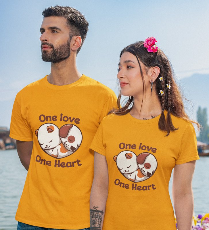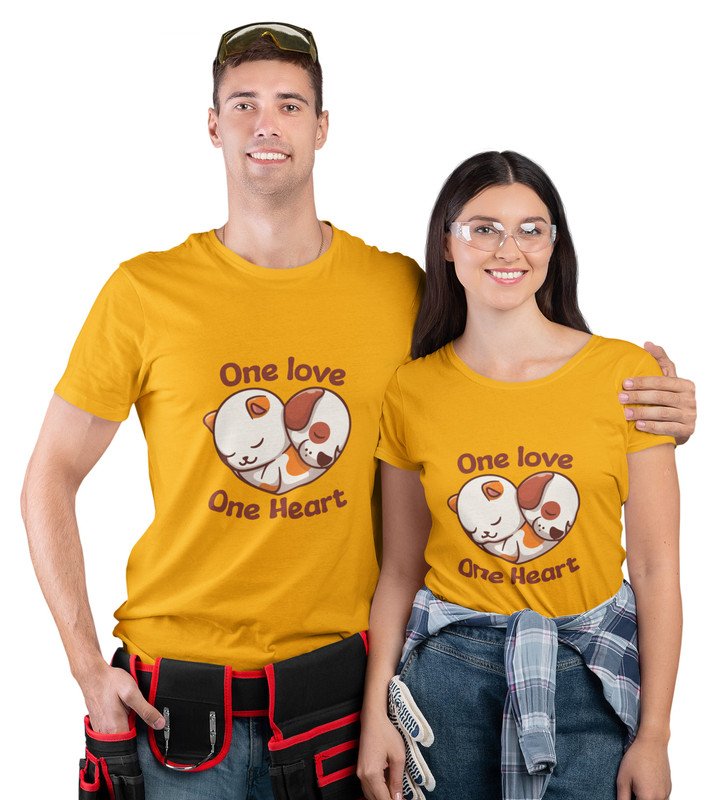 One Love One Heart Printed Couple (Yellow) T-shirts