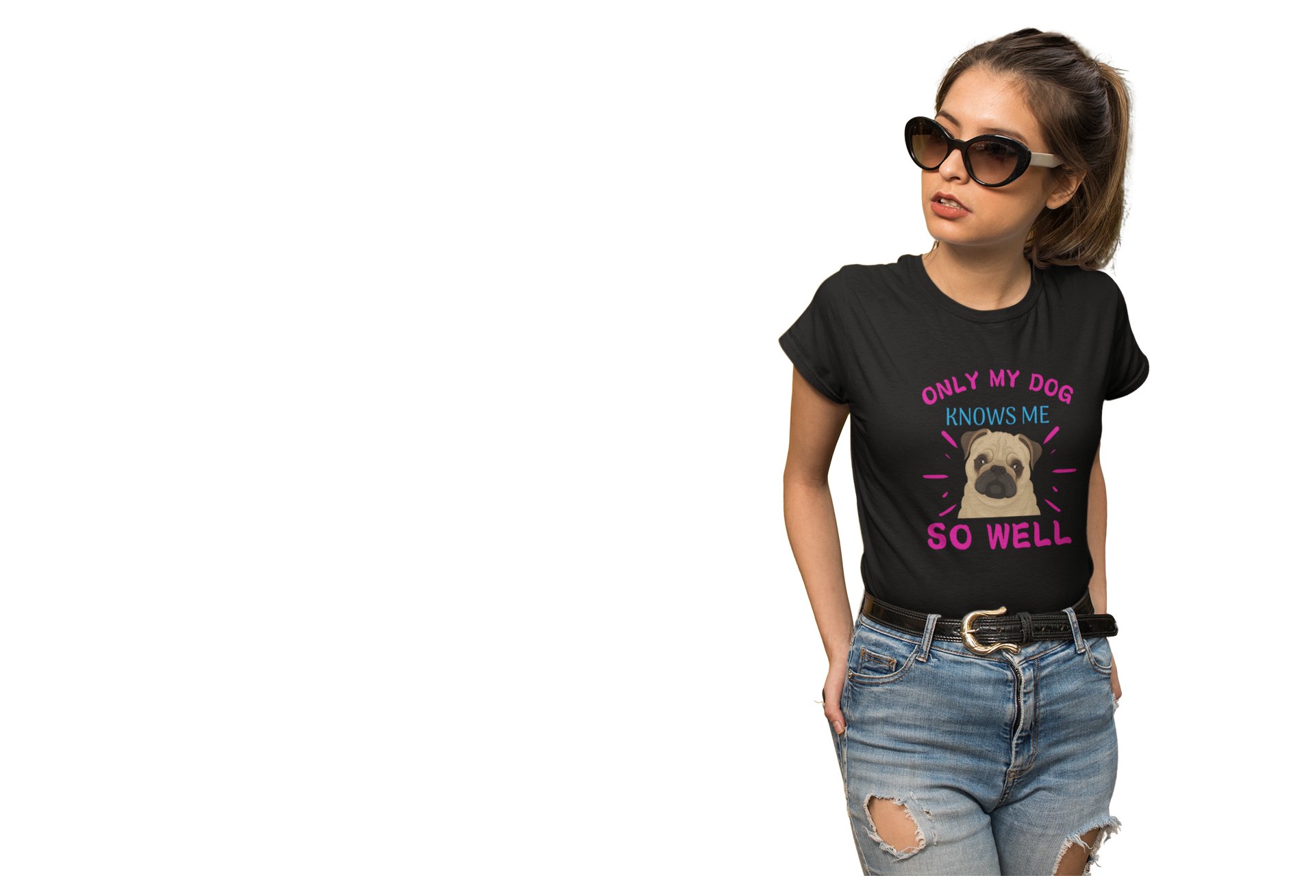 Only my dog knows me so well - Black-printed cotton t-shirt - comfortable, stylish