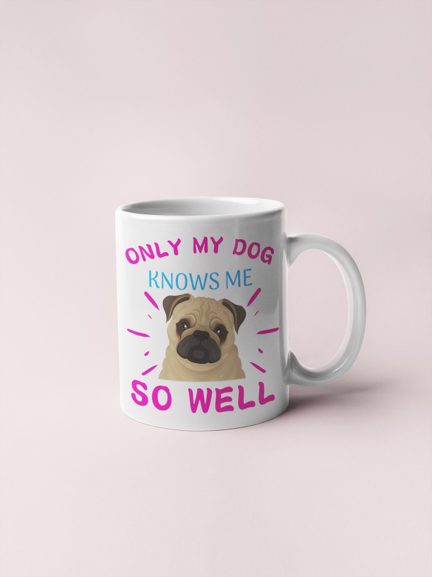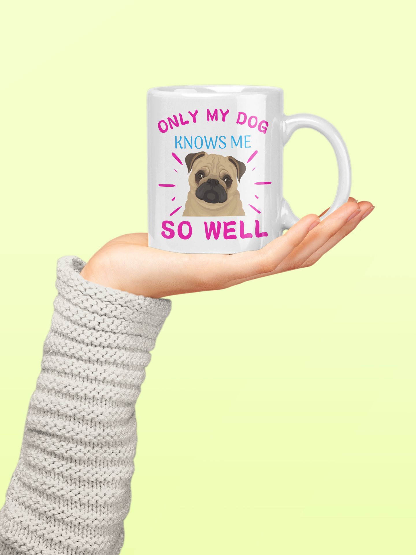 Only my dog knows me so well - pets themed printed ceramic white coffee and tea mugs/ cups for pets lover people