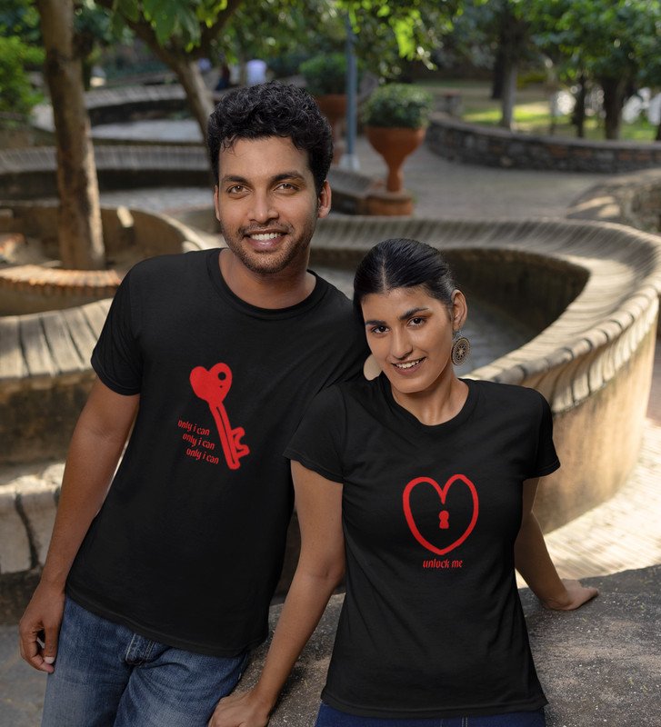Only You Can Unlock Me Printed Couple (Black) T-shirts