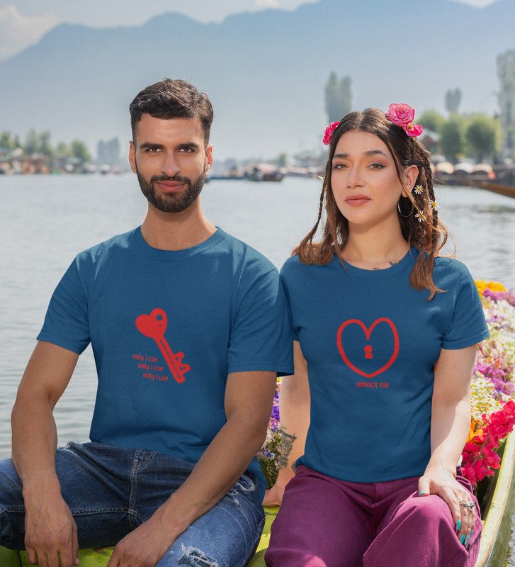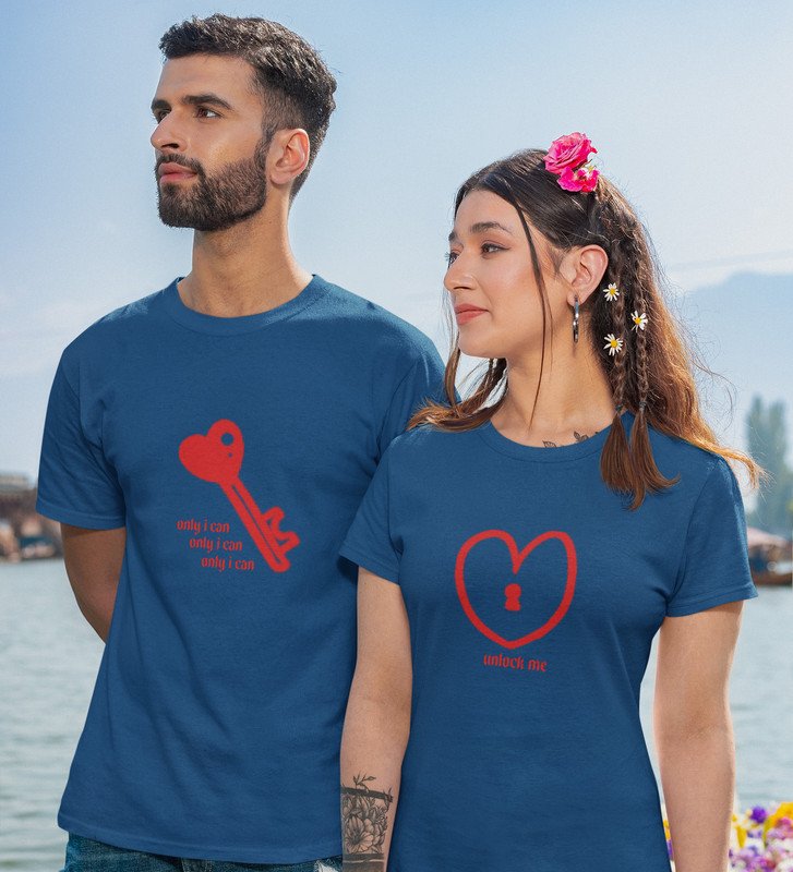Only You Can Unlock Me Printed Couple (blue) T-shirts