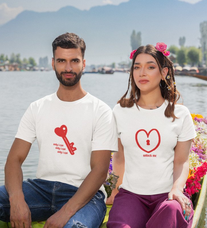 Only You Can Unlock Me Printed Couple (White) T-shirts