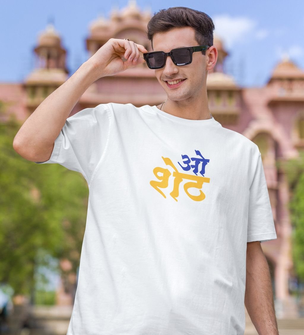 Oo Sheth White Round Neck Cotton Half Sleeved Men T Shirt with Printed Graphics