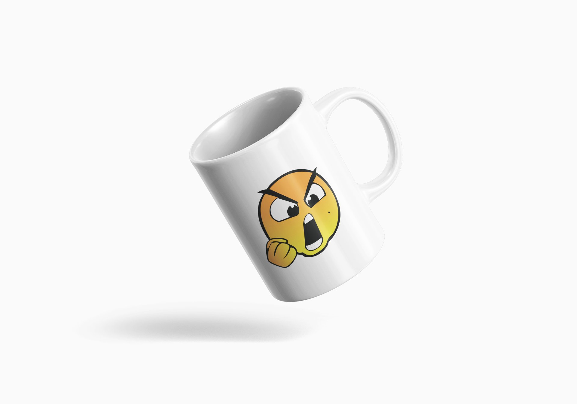 Open Mouth Angry Emoji- emoji printed ceramic white coffee and tea mugs/ cups for emoji lover people