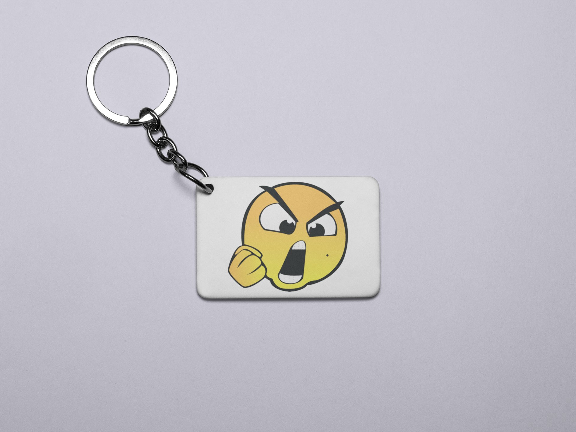 Open Mouth Angry Emoji- Emoji Printed Keychains For Emoji Lovers(Pack Of 2)