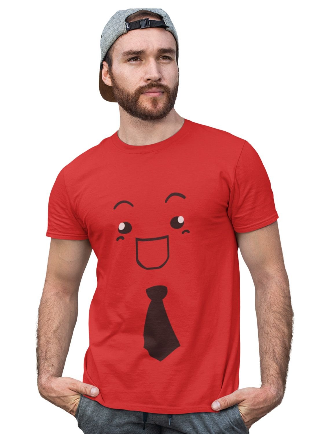 Open Mouth with a Tie Emoji T-shirt (Red) - Clothes for Emoji Lovers - Foremost Gifting Material for Your Friends and Close Ones