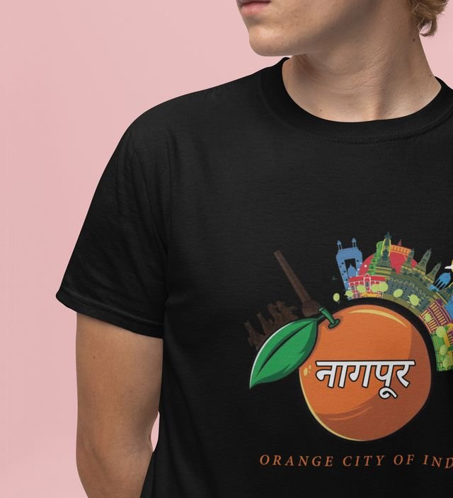 Orange City & Temple Tranquility: Nagpur's Divine Spirit Graphic Printed Black T-Shirt for Men