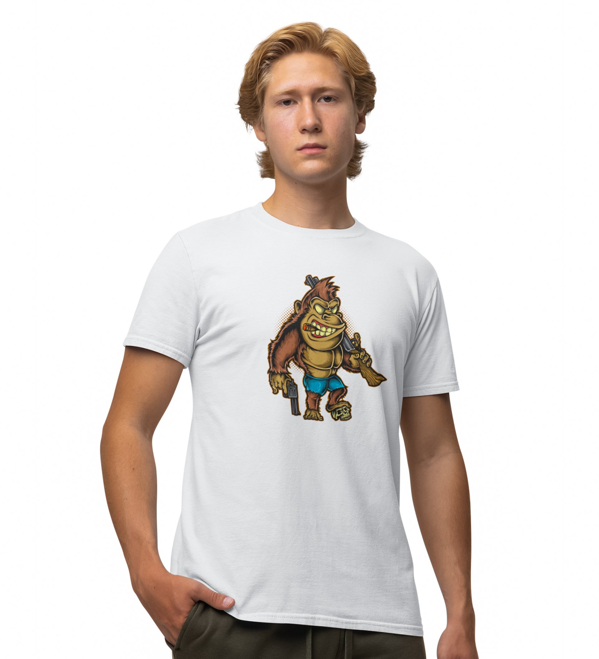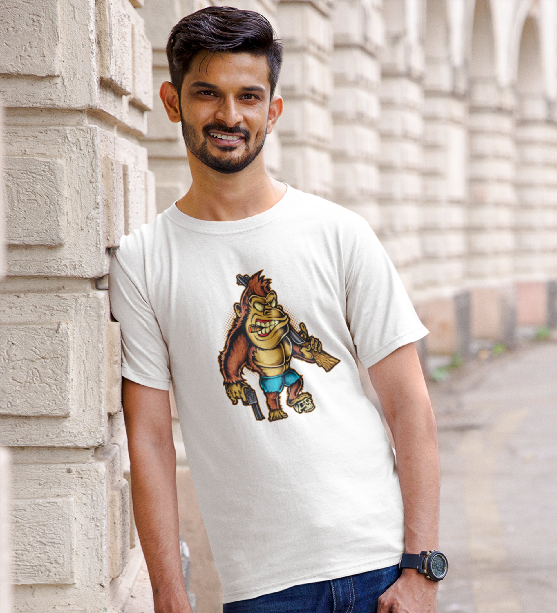 The Mobster White Round Neck Cotton Half Sleeved Men's T-Shirt with Printed Graphics