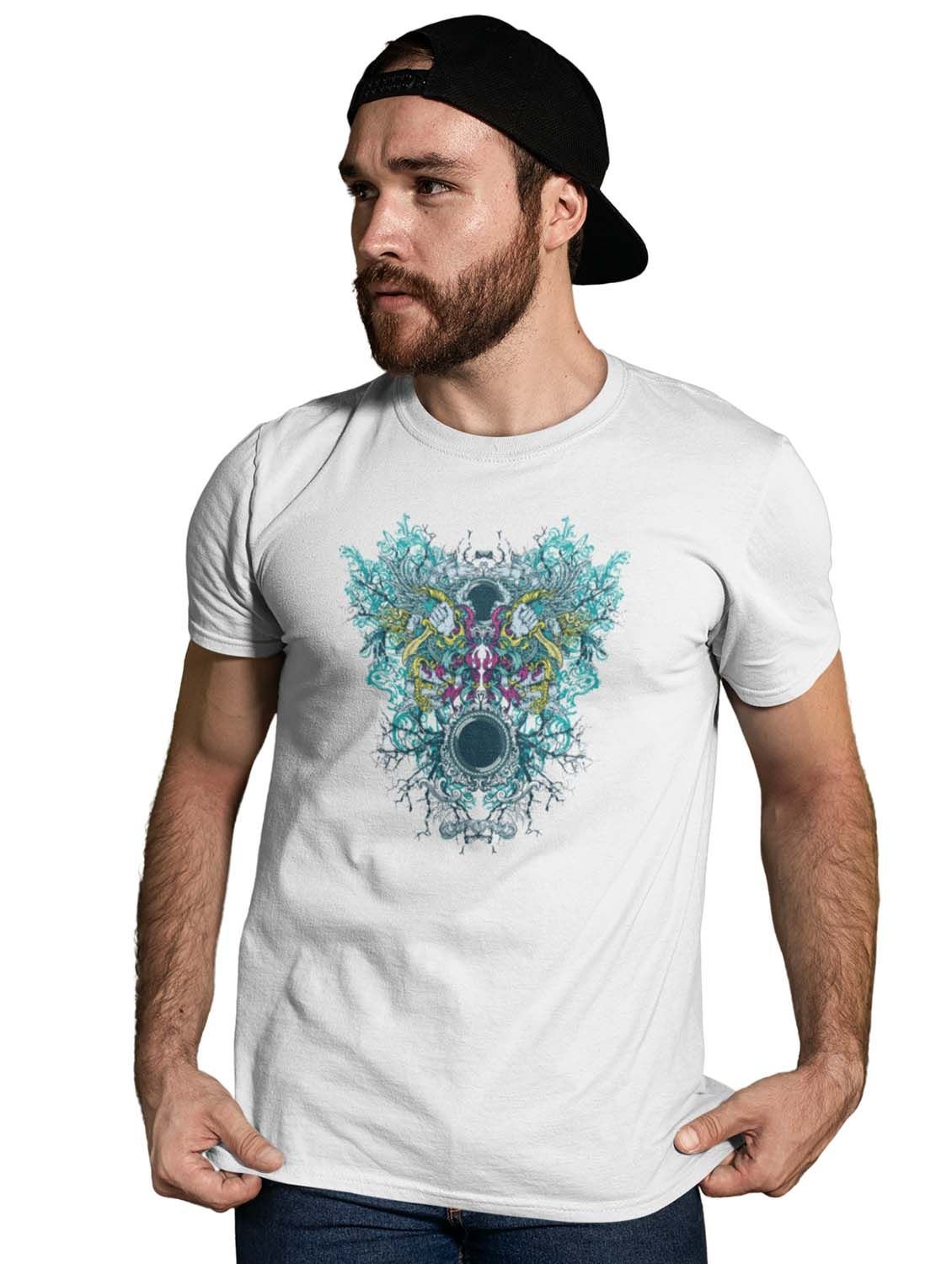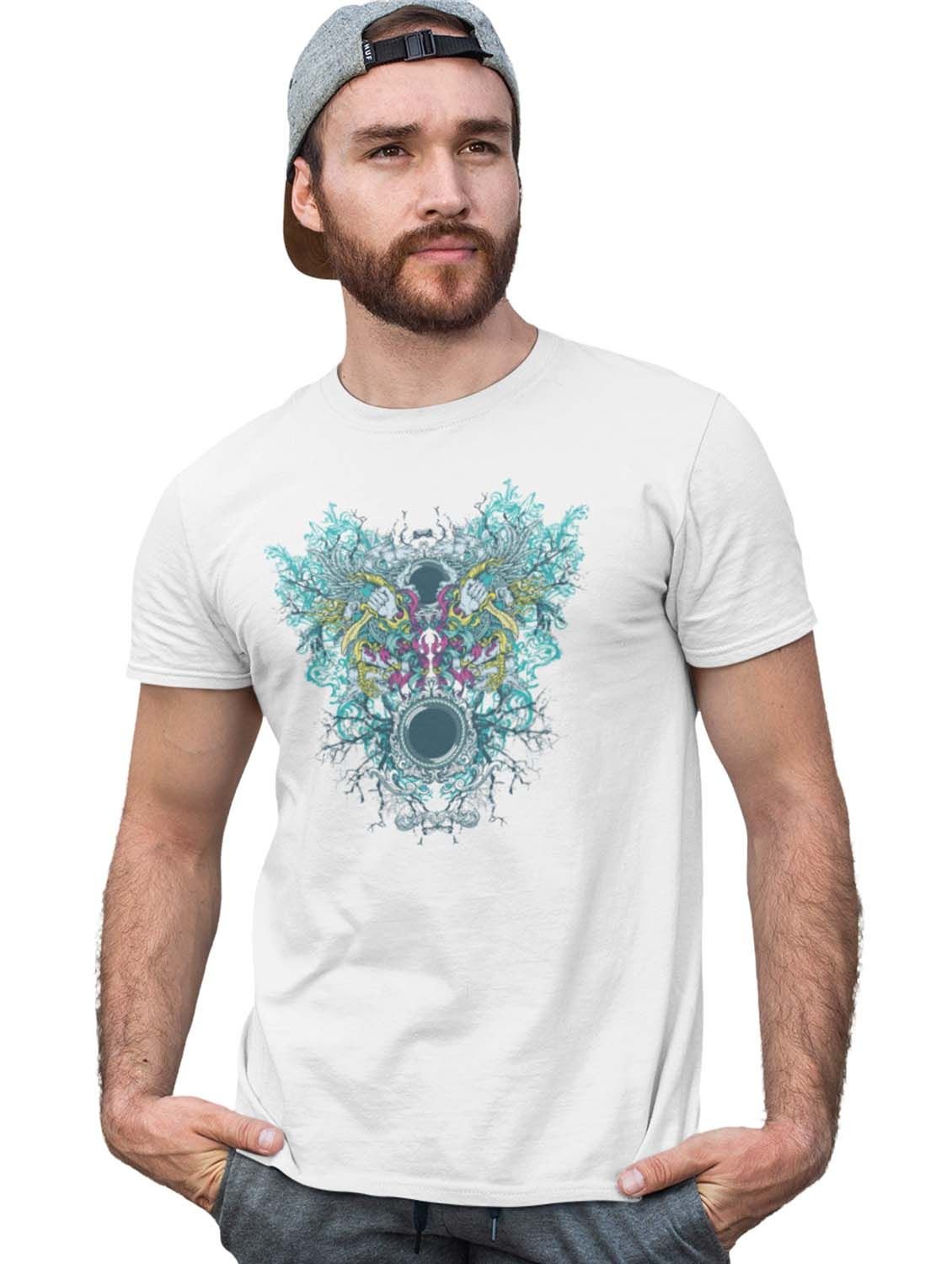 Mirror Monster White Round Neck Cotton Half Sleeved T-Shirt with Printed Graphics