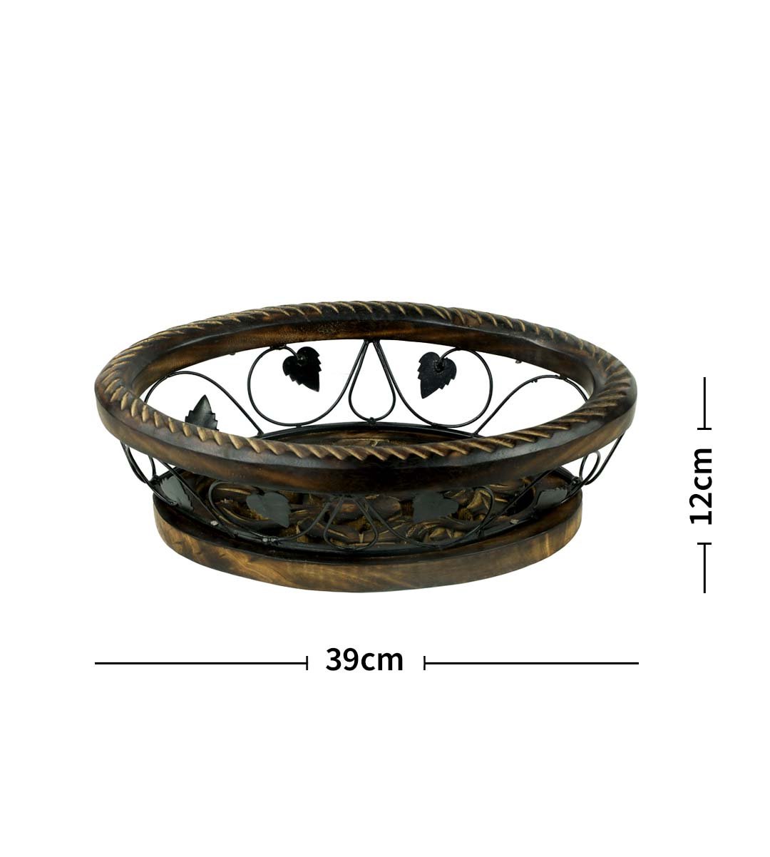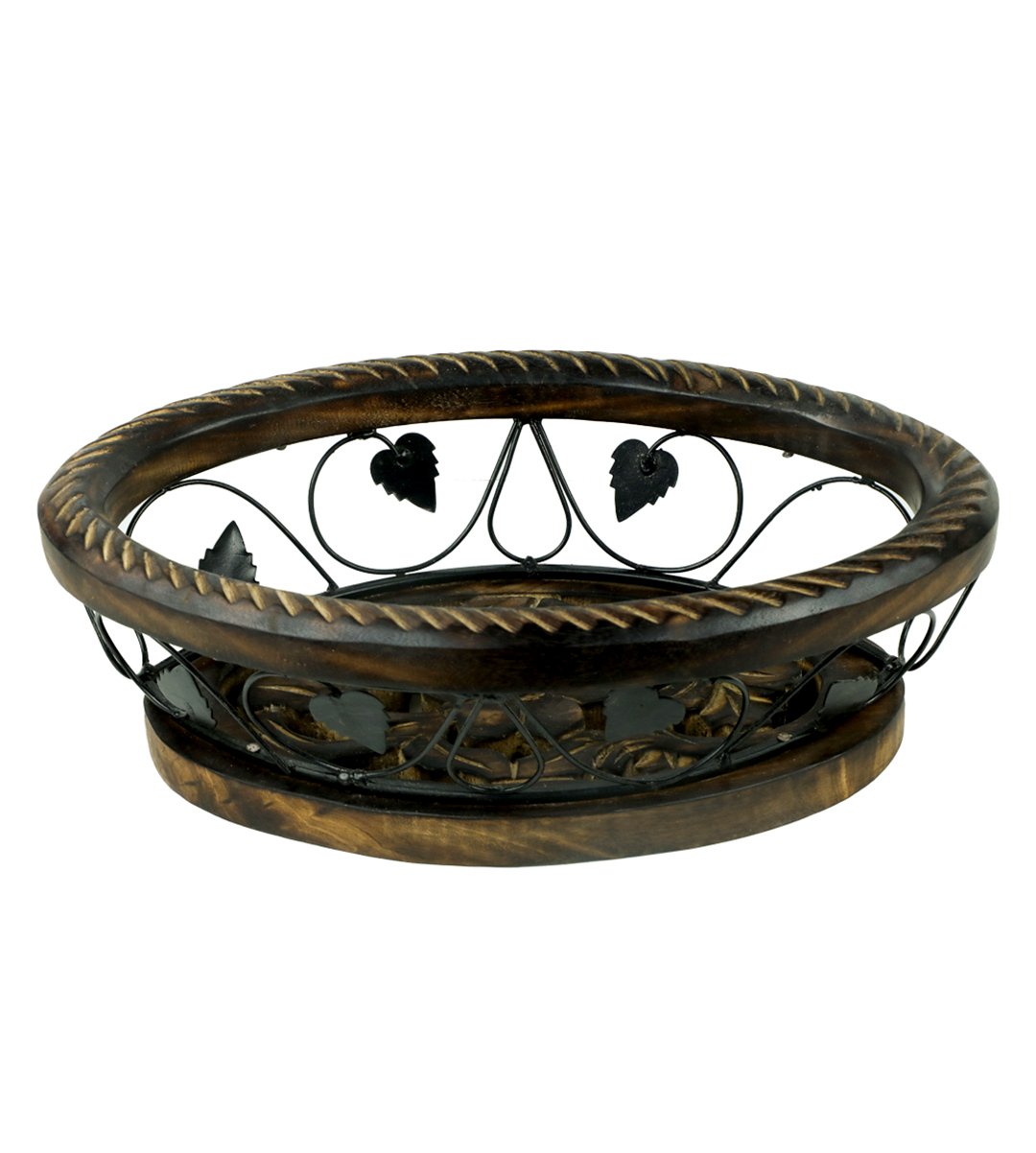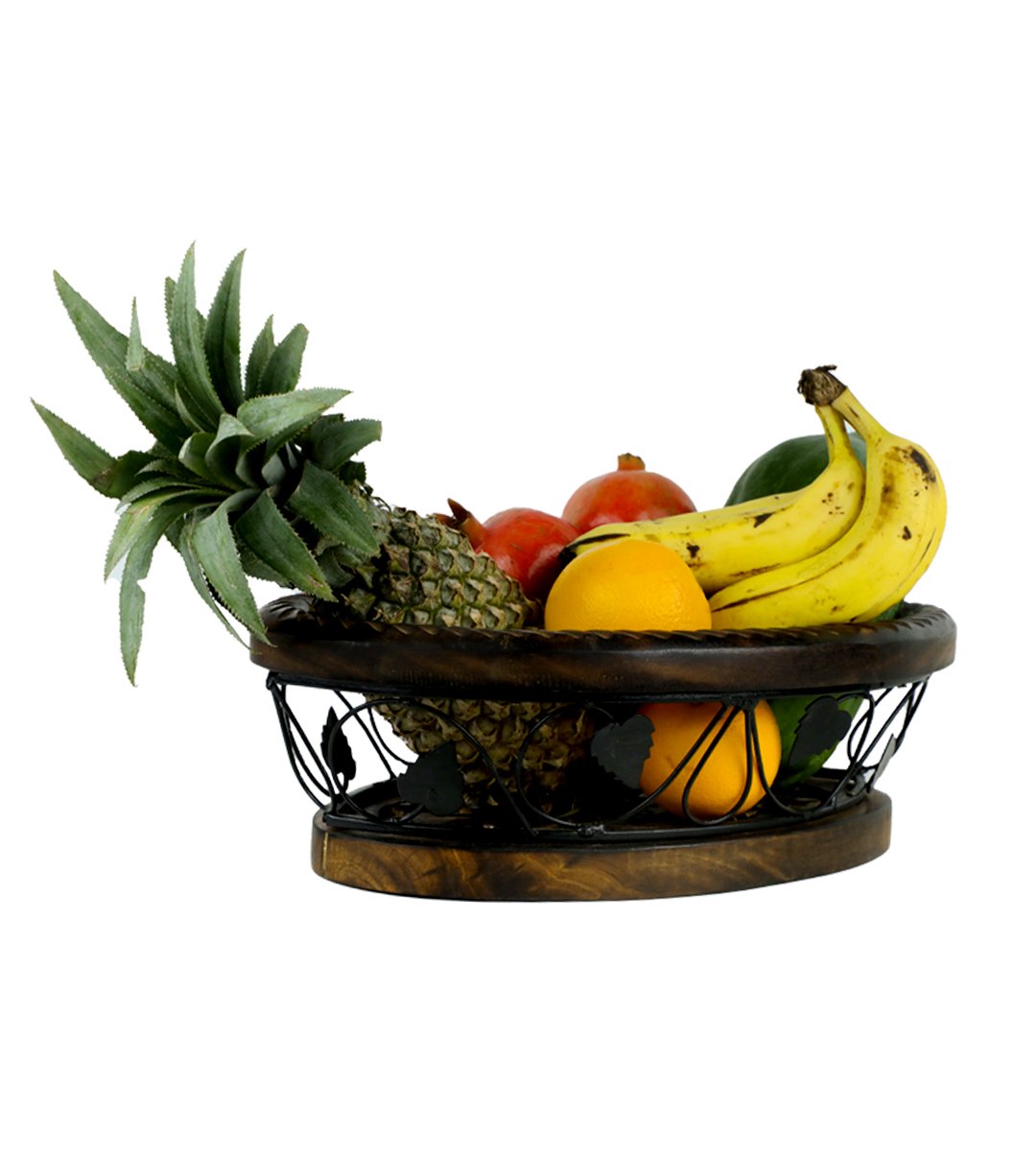 The oval/ eclipse shaped wooden and wrought iron fruit and vegetable basket, fruit vessel, or a fruit container, tokri is used to keep both fruits and vegetables in it. The product is made up from wrought iron and wood. Intricated with every detailing of the product, carryable and its eclipse shaped basket looks more classy. It is used to keep in dining tables and center tables. The designs enhancing the product into a classified one. It has best finishing. You must have your favourite one. We have brought you many fruit and vegetable containers to choose from. You can gift it to your family, relatives, friends, siblings. Also it can be gifted in birthdays, marriages, anniversaries, house warming parties, christmas parties, kitty parties etc. Grab it as soon as possible.